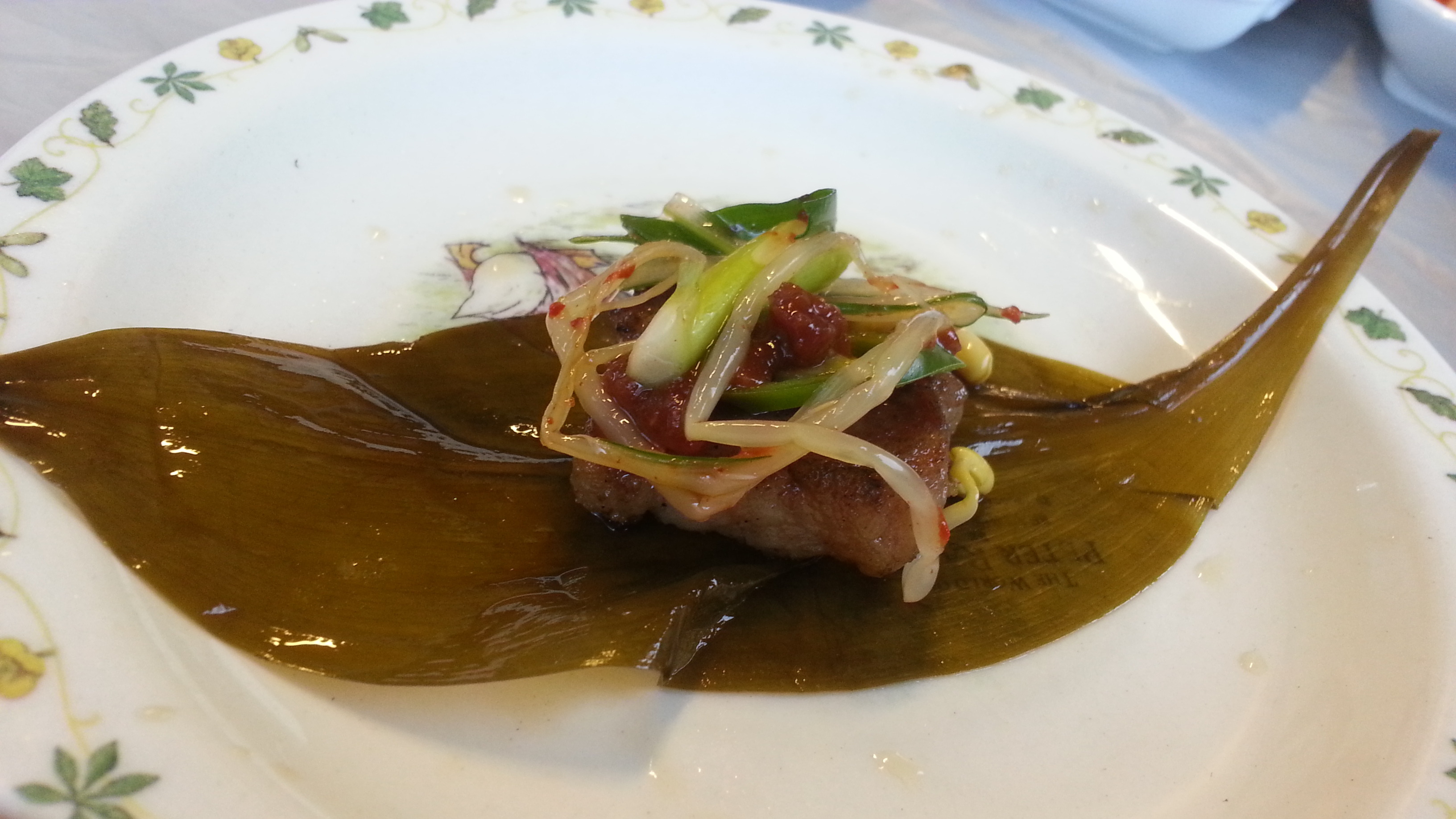 목삼겹을 명이나물에싸서