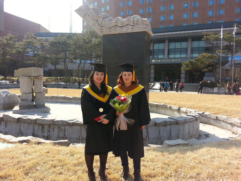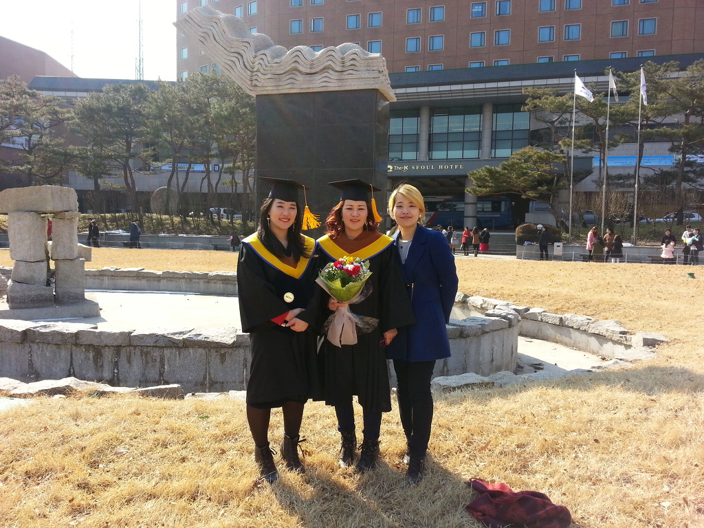 3자녀를주의종으로서원했는데 큰딸한나와함께 올2월15일양재동교육문화회관에서대학졸업 (상담심리학,경찰상담수료증도취득함)한나는예술경영학과)(한나는배에등쪽에서부터일본지도큰게점으로있다)동기함께선교대학원에입학함.