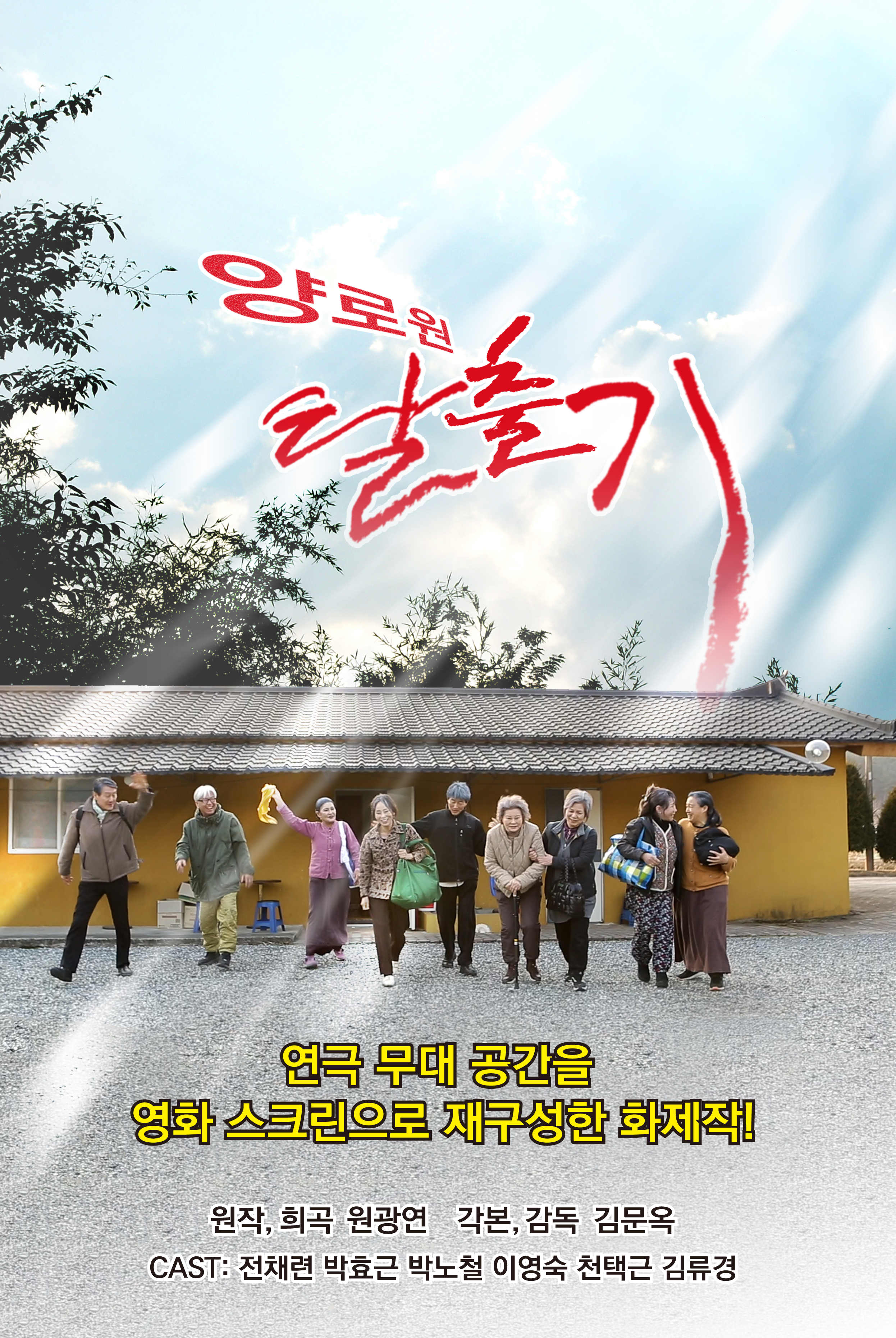연극 무대 공간을 영화 스크린으로 재구성하는 영화 ‘양로원 탈출기’(희곡:원광연/각색,감독“김문옥)의 제작 제작발표회 & 첫 리딩이 2026년 1월8일 충무로 영상센터 오재미동에서 열린다.