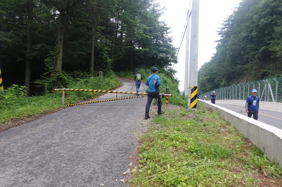 (09;42)왔던 길을 악20m Back 고개마루 우측 차단기를 지나 임도 따라 오릅니다