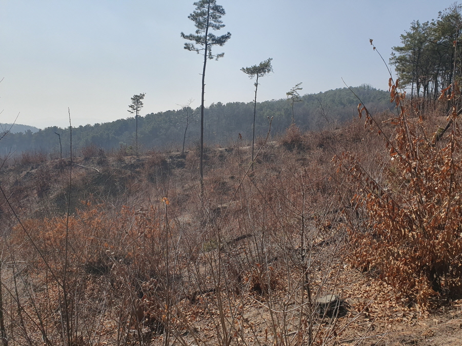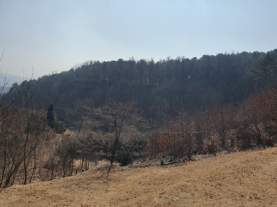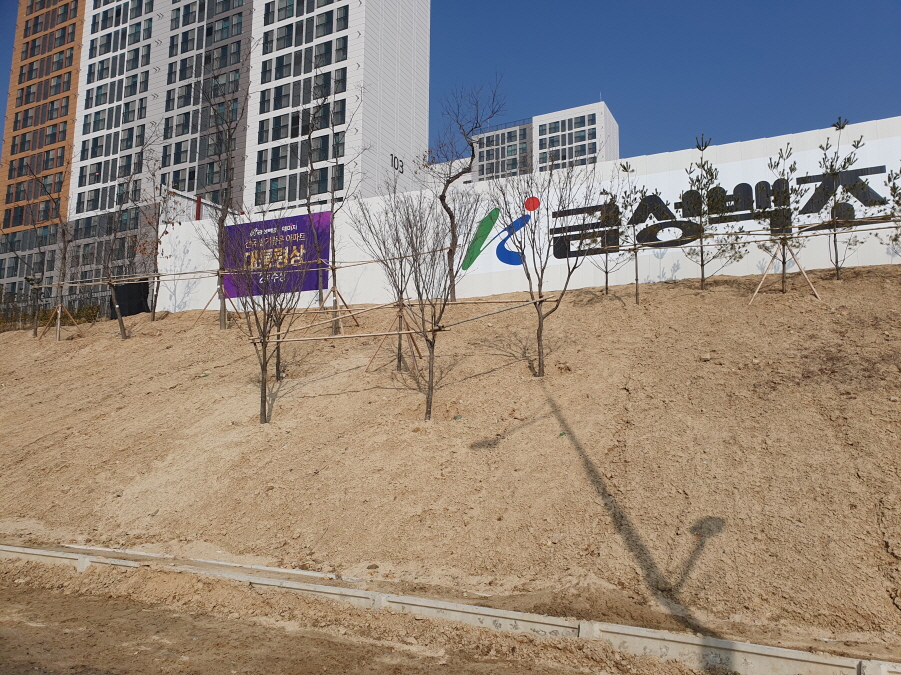뒷동산(80m)은 없어져 공사 중인 아파트단지 법면으로 형질 변경되어 있다.