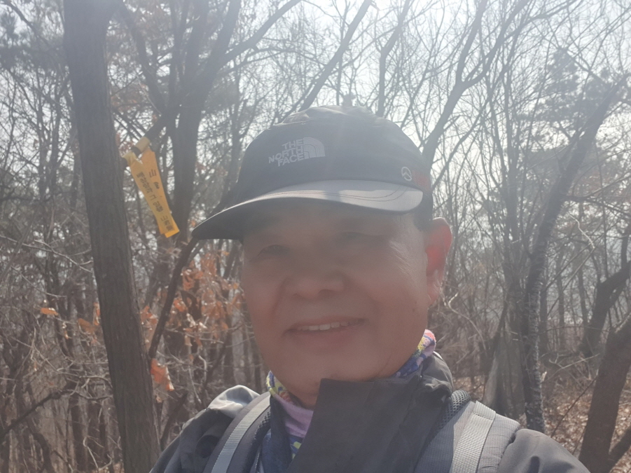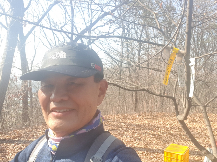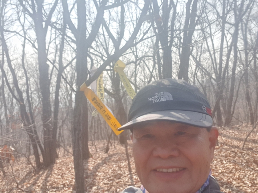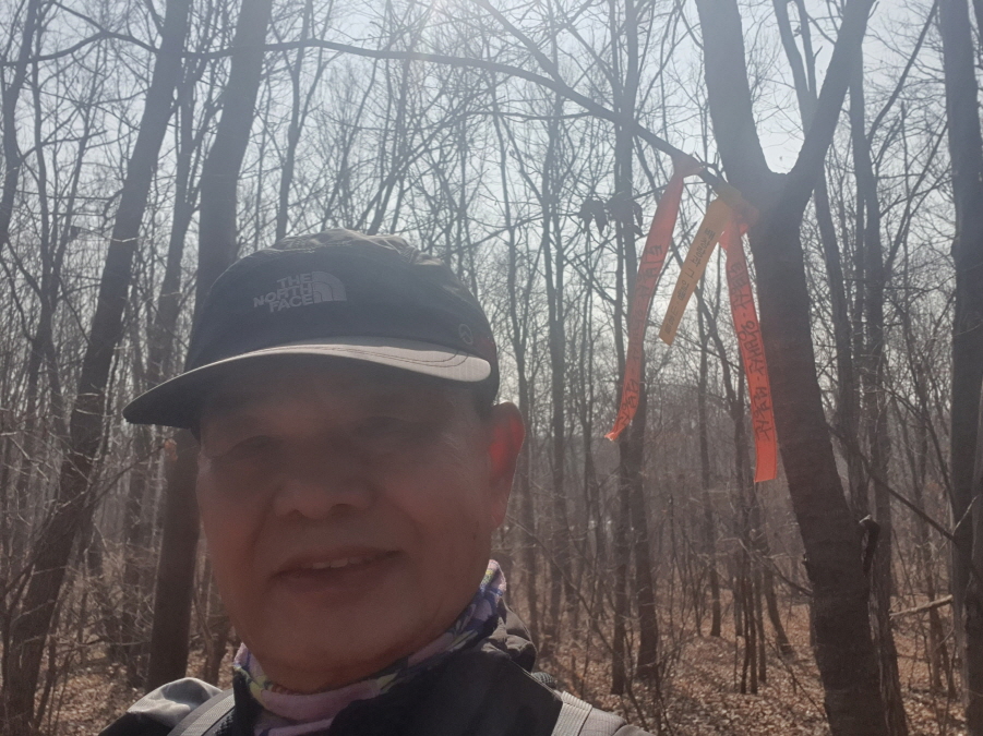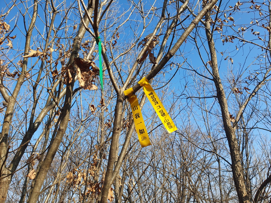 (14;08)[8분] 휴식시간 갖고 (小) 왕배산(126m) 정상을 떠나면서 반대편 가지에 표지기 걸고 사진 남깁니다