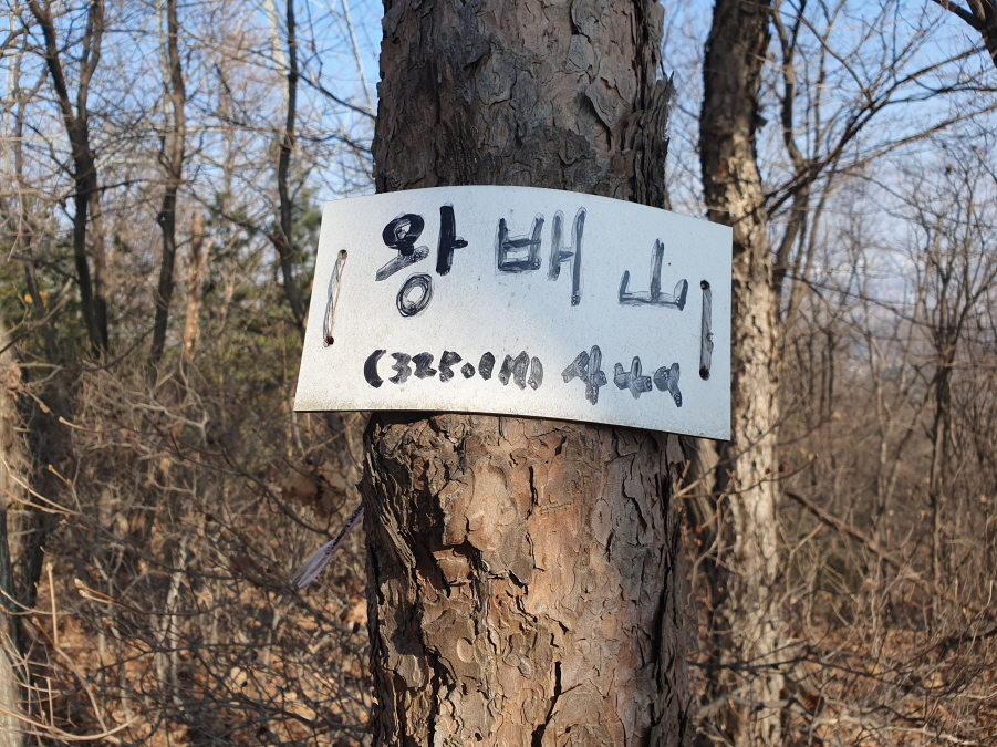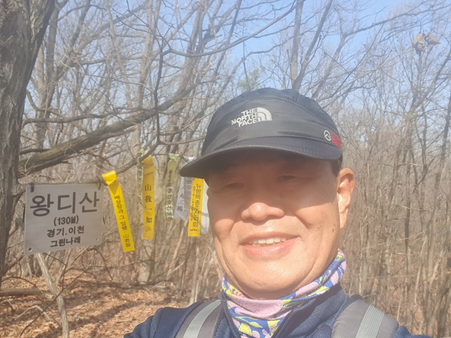 사나이님 왕배산(310m) 정상 표지판 매여있다. Korea지도에는 무명봉이나 이천 주민들은 이곳을 왕배산이라 칭한다. 325.1m는 잘못된듯싶다.