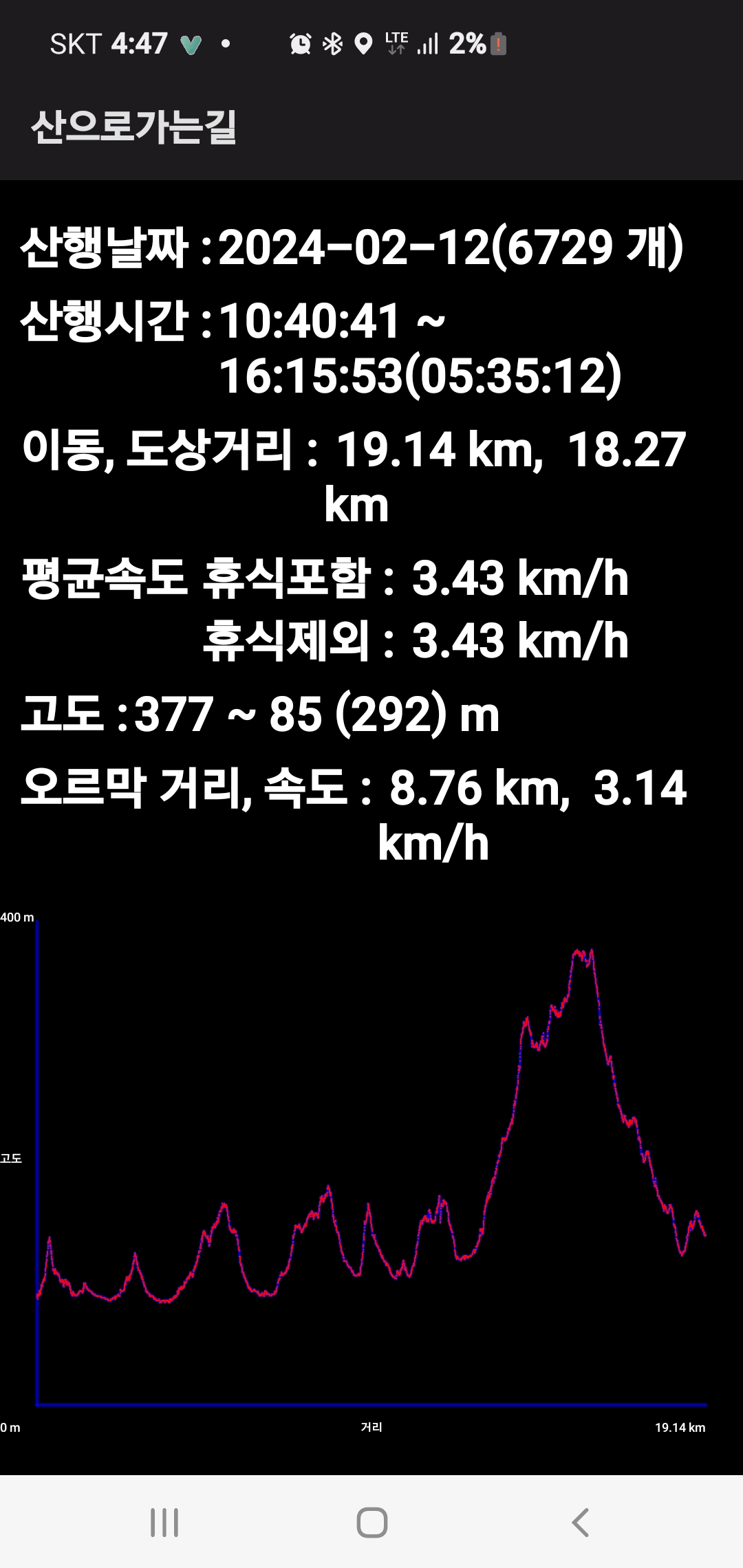 산행일자;2024년 02월 12일(월), 날씨; 맑음, 산행거리;17.6km 산행시간;5시 산 35분(10;40~16;15)