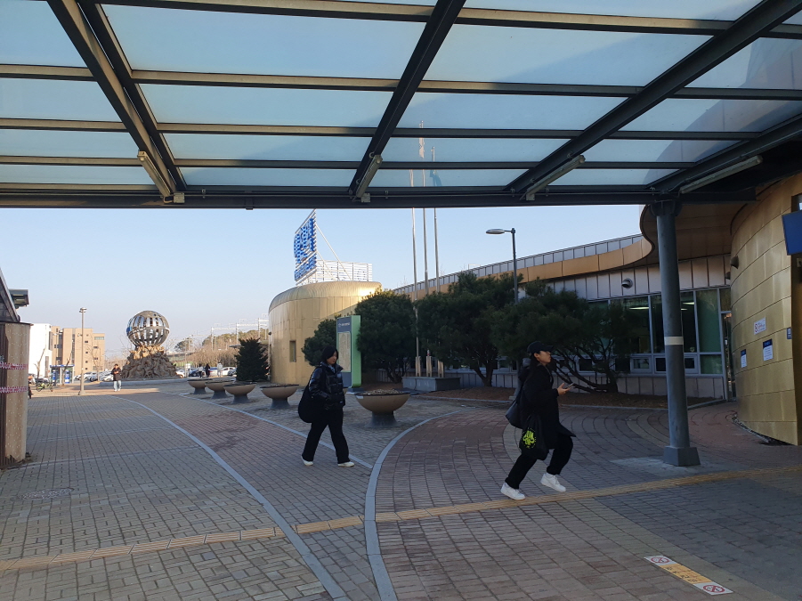 (10;56) 현대홈타운 아파트 후문으로 들어가 정문으로 나옵니다.