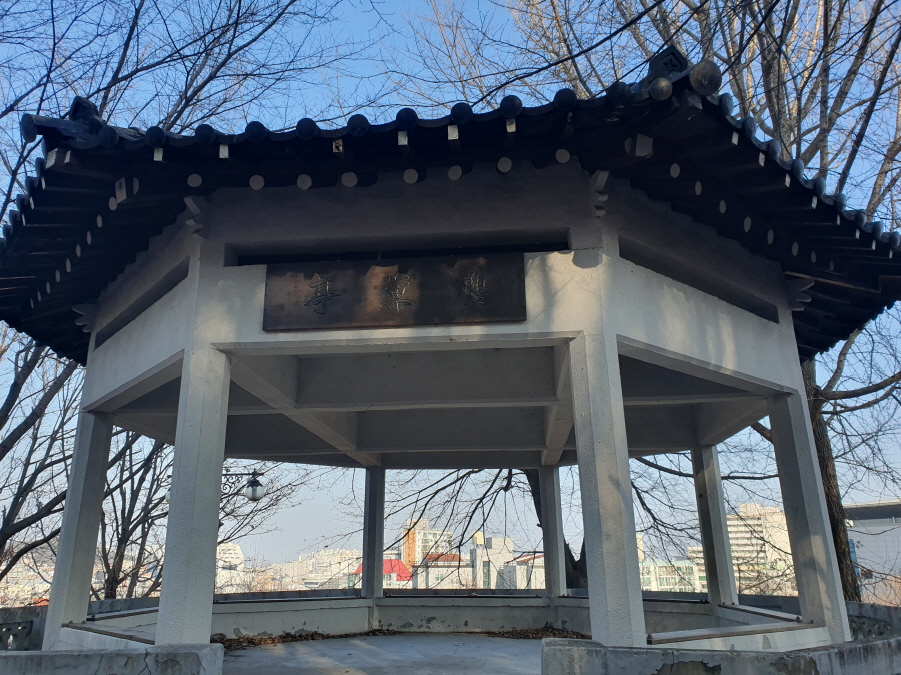 삼각점(경기 251) 있다. 학소정 정자 바로 위가 뾰죽산(106m) 정상이다.