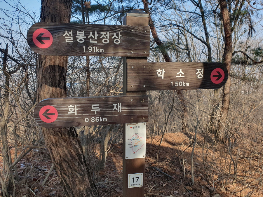 (15;19) 이정표(학소정 1.50km/설봉산정상 1.91km/화두재 0.86km) 있는 이섭봉(319m) 정상입니다.