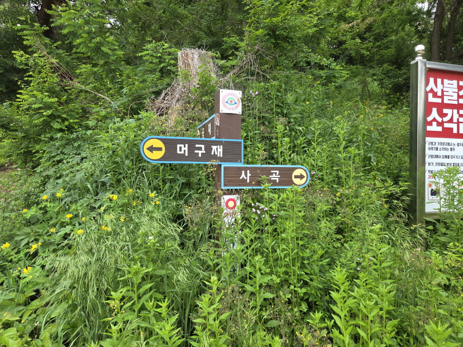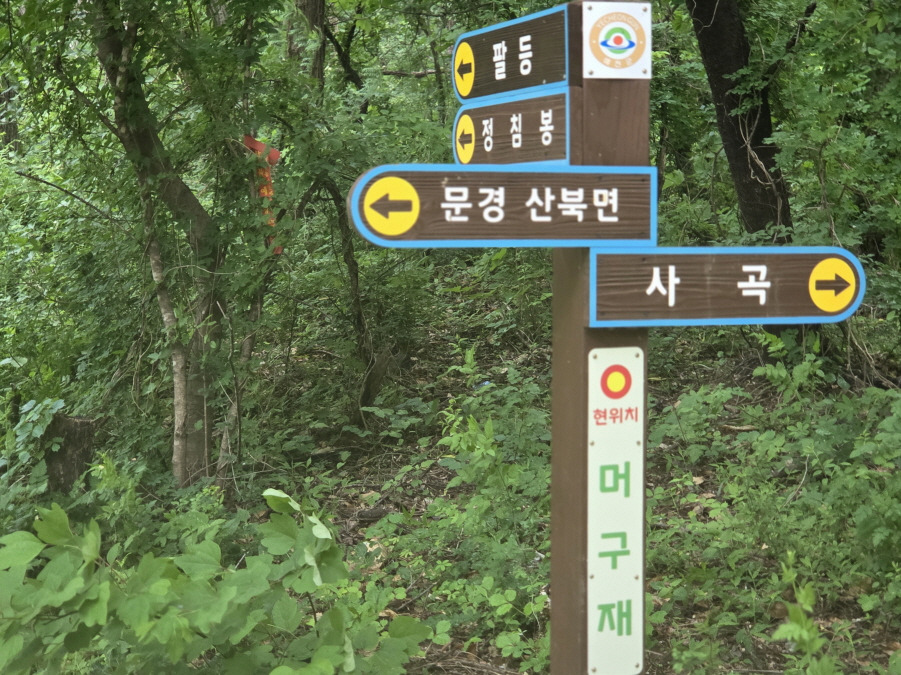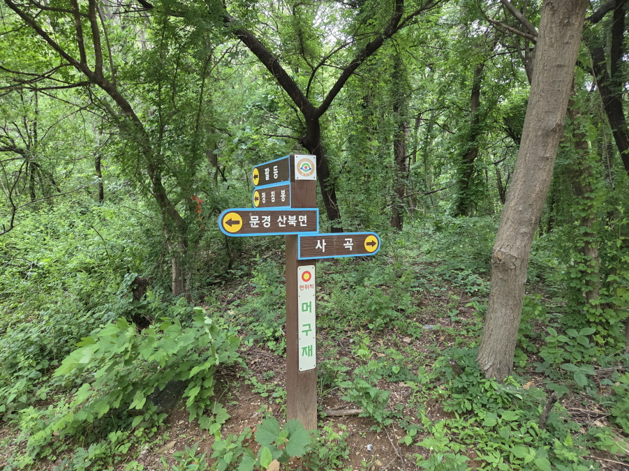 (11;47) 머구재(345m) 이정표(*****/문경 산북면/정침봉.팔등/사곡)서있는 4거리 고개 마루입니다.