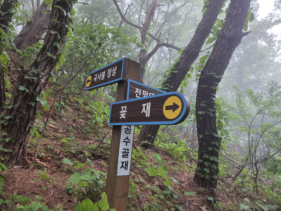 (13;43) 공수골재 이정표 표시목(국사봉정상/전망대/꽃재)입니다