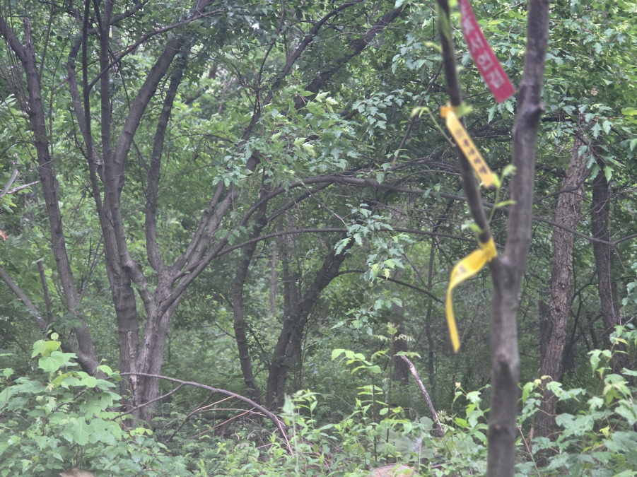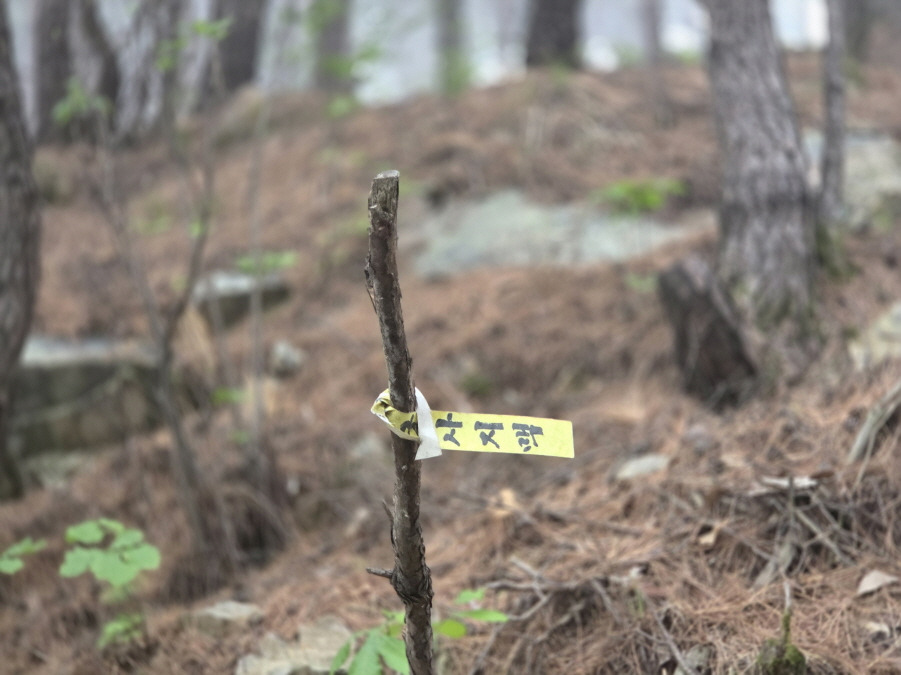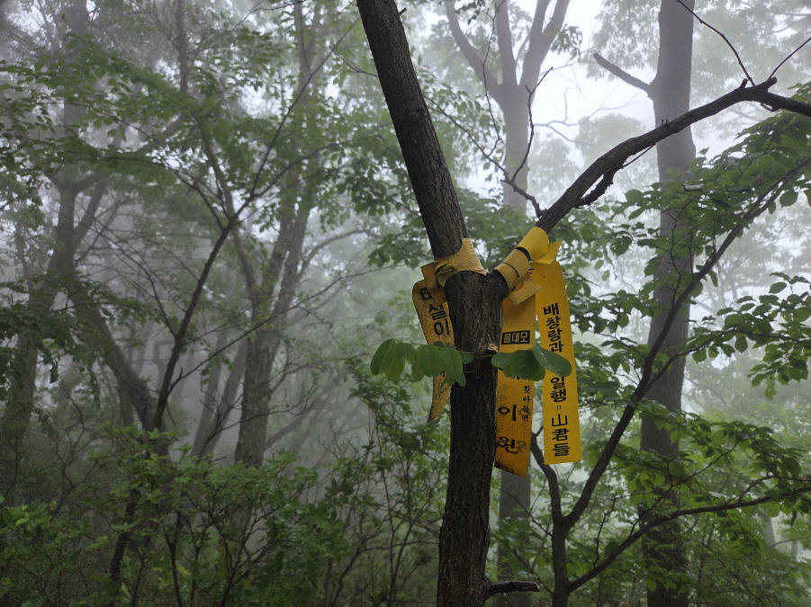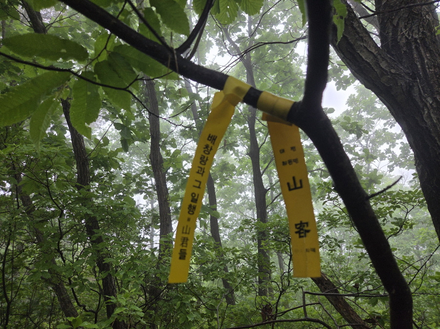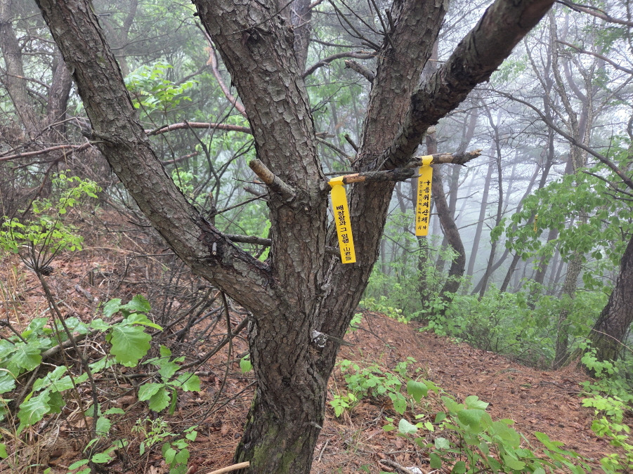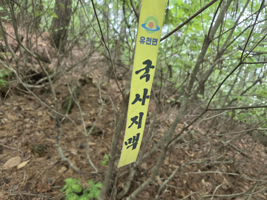 (13;59) 유천면에서 만들어 부착한 등로상의 국사지맥 표지기입니다