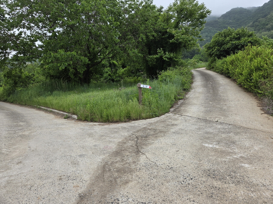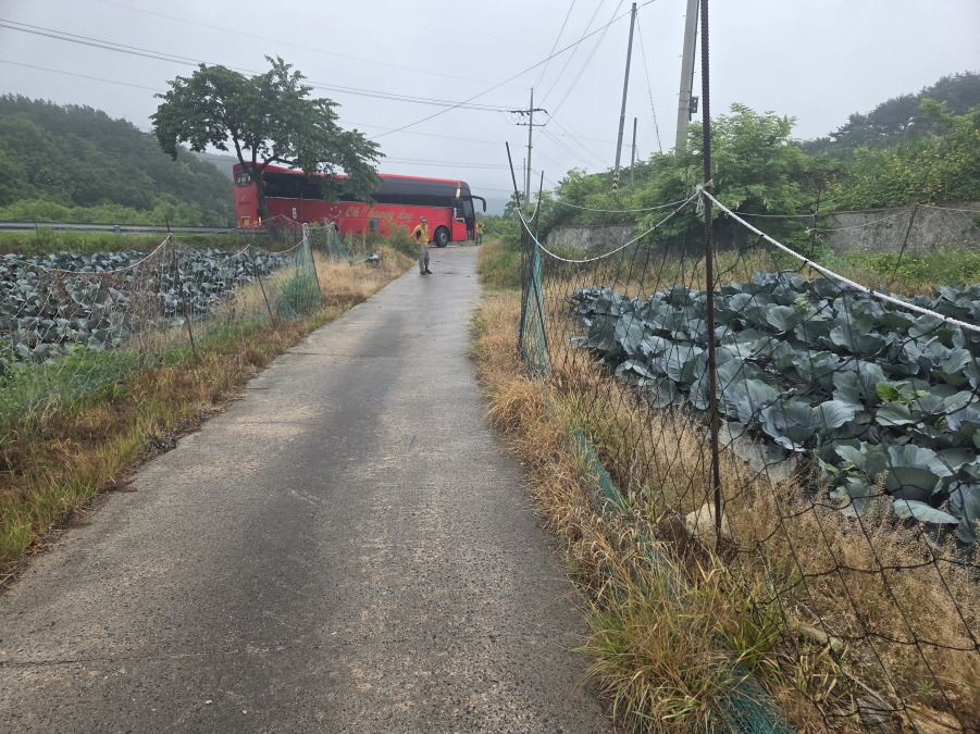 홍 회장님의 배려로 본진 날머리로 가는 도로에서는 약 8km 전체적으로 약 30km/40분 이동 경상북도 예천군 유천면 사곡리 92-3 "사곡리 경로당" 앞 공터 버스회차장 공터에 도착 개인 산행 길에 듭니다.홍회장님이하 강송 임원진에 감사드립니다