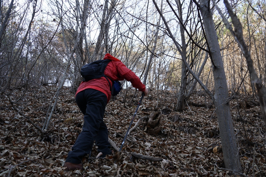 (13;42) 힘들게 주능선 안부에 붙어 좌측으로 능선 오름길 오릅니다