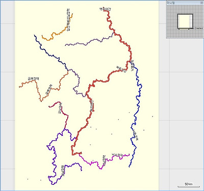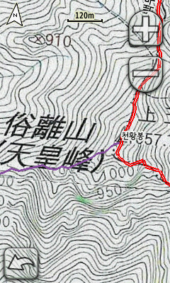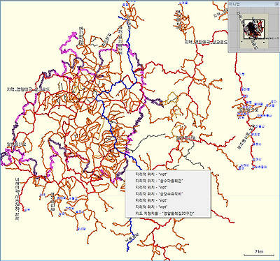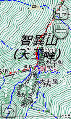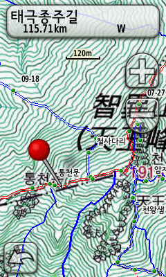 조은산님의 1대간 9정맥 산행트랙으로 만든 .img지도, 역시 종류별로 색상과 형태를 달리하여 제작