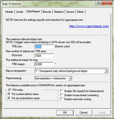 위에 기슬한 내용을 바탕으로 생각해보면, TRE Size 값에의해 Map Tile의 크기를 결정하고 RGN Limit 값에 따라 각 Tile내의 개체수를 결정한다는 결론을 내릴 수가 있는데, 각 Tile당 개체수는 입력값을 참조는 하겠지만 어느정도 유동적인 것으로 생각된다. 또 ,이 값이 Map Performence에 영향을 미친다면 대략의 값을 파악하여 입력하여야 겠지만, cGPSmapper 사용설명서에는 최근의 실험에서 이 설정값이 Map의 Performence에 영향을 미치지는 않는 것 같았으니 최고값인 1,024로 입력해도 무방하다고 설명되어 있다.