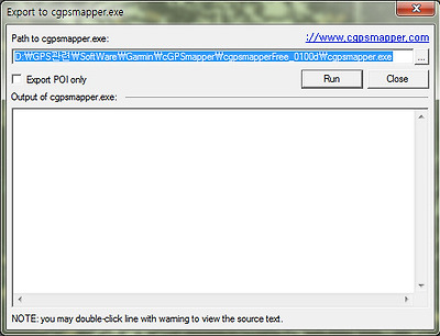 참고로, cGPSmapper 프로그램은 기본적으로 Command Line 프로그램으로 Command Prompt(Dos)창에서 실행해야 되지만, 이 경우처럼 GpsMapEdit의 Add-On 프로그램으로 실행시킬 수도 있다. Command Prompt에서 실행시킬 경우에는 Batch 파일을 작성하여 이용하면 편리하다.