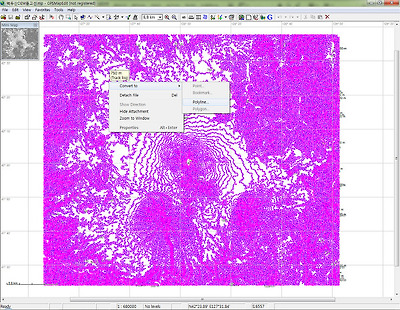 메뉴바 → Edit → Select → All Waypoint를 차례로 선택하고 선택된 Waypoint 중의 하나 위에서 오른 클릭하면 나타나는 Pop-Up 메뉴에서 Convert to → Point를 선택하고 나타나는 Select Type Dialog창에서 0x6600 Land feature를 선택한 후, Apply 버턴을 누르고 OK 버턴을 누른다.