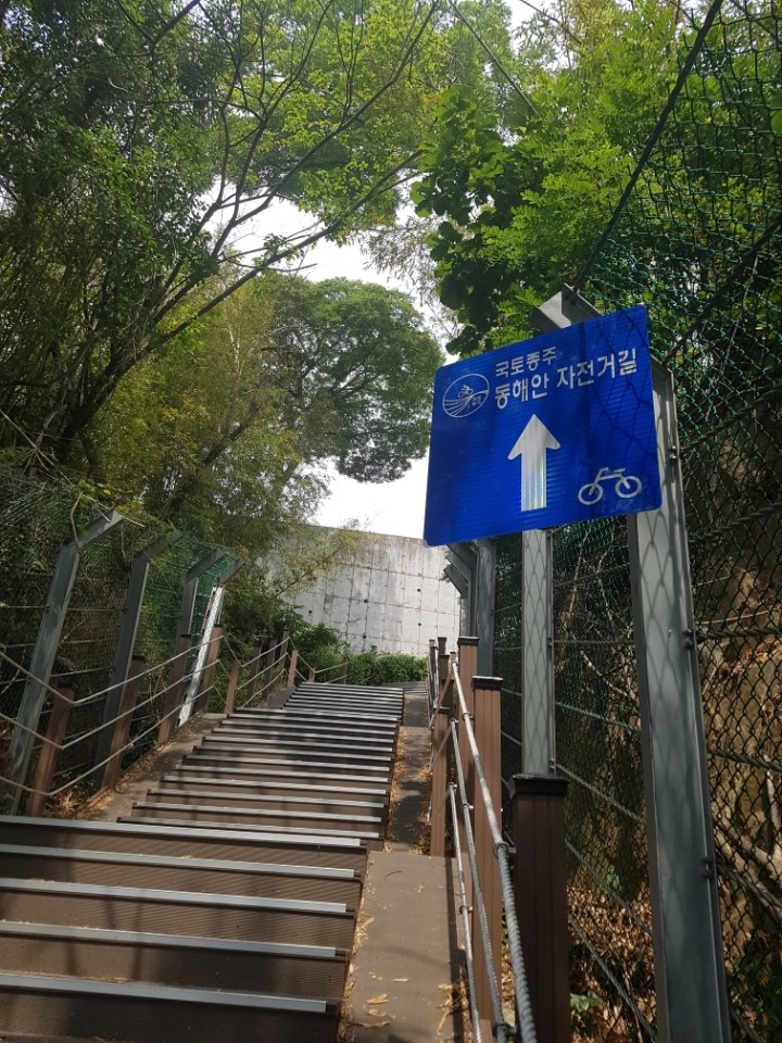 무슨 이유 인지는 모르지만 동해안 자전거 인증부스는 울진에서 끝났지만 도로에 동해안 자전거길 이정표와 안내표지는