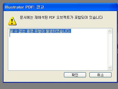 “문서에는 재해석된 PDF오브젝트가 포함되어 있습니다”.와 “알수없는 음영유형이 발생하였습니다”가 무슨 뜻인지, 이것 때문에 레이어가 여러개 나타나지 않는 것으로 여겨져 작업이 불가능한 것으로 판단됩니다. 아시는분 알려주시기바랍니다...이것 때문에
