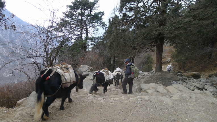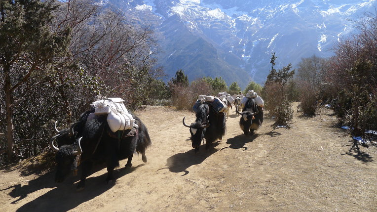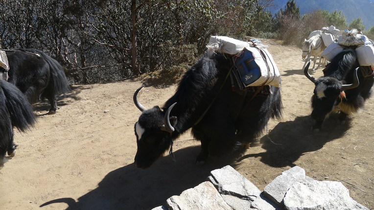 이러한 야크를 만나면 계곡 반대편 산 쪽으 길옆으로 피해있는게 좋다..