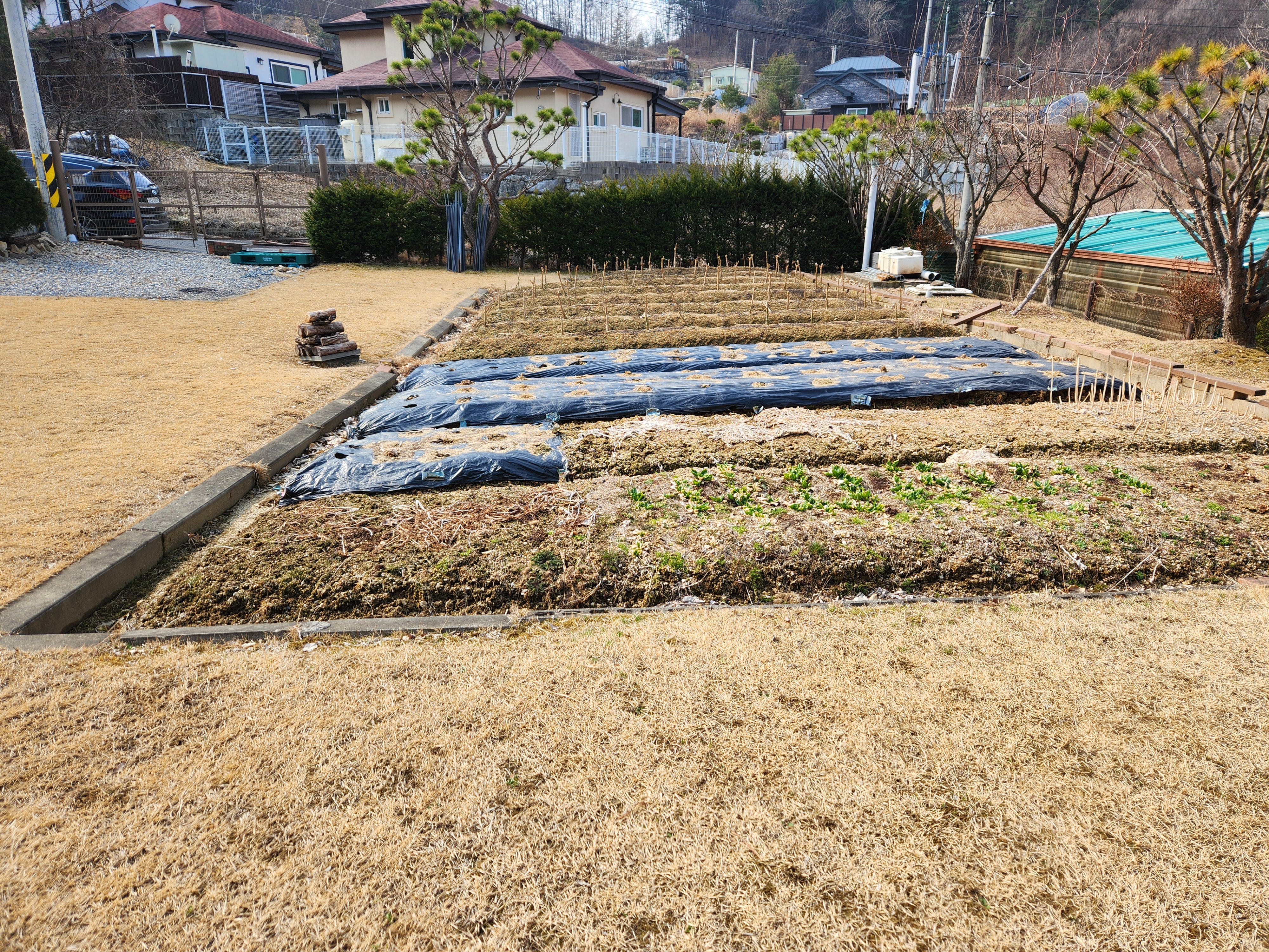 산을 등지고 정남향주택으로 앞마당이 넓은 주택입니다.