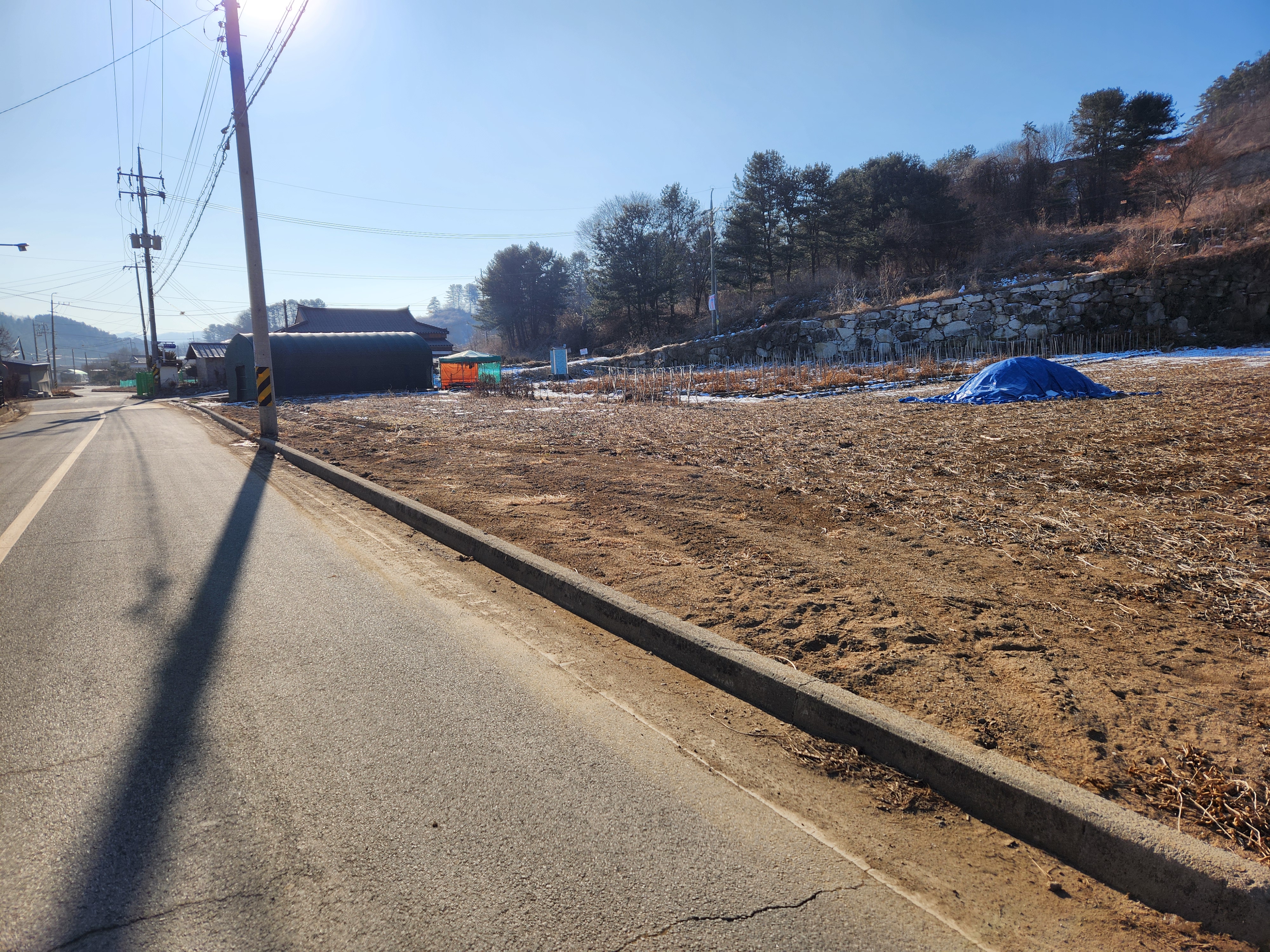 한적한 2차선도로옆에 있는 토지로 도시가스와 광역상수도연결이 가능한 위치입니다.