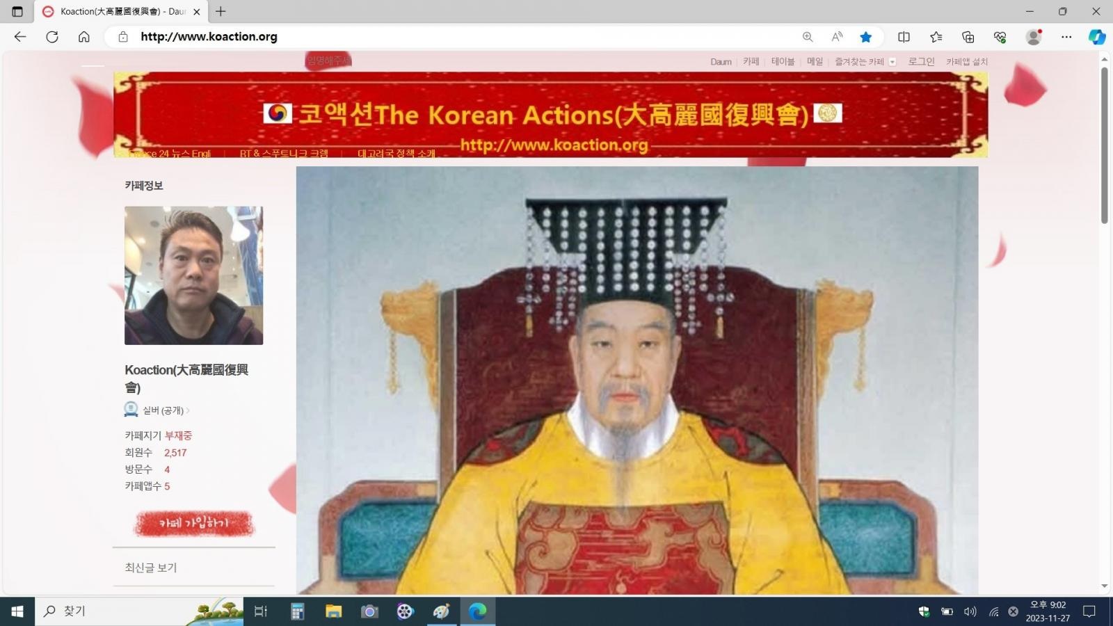 코액션The Korean Actions(大高麗國復興會) http://www.koaction.org