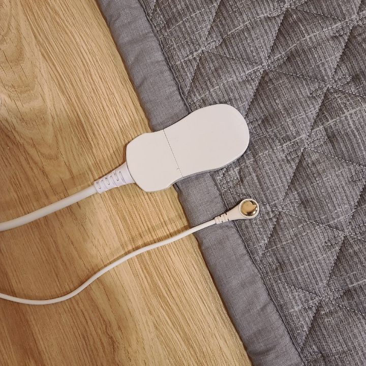 ▣ 매트 상판을 전도성원사와 마이크로모달면으로 특수 제직하여 부드러운 촉감과 함께 전도성 원단에 어싱장치를 부착하여 직접적으로 땅과 연결시켜 몸에있는 양전자를 땅으로 흘려 보내고 땅의 기운을 받아 들이도록 하였습니다.