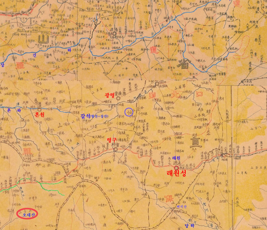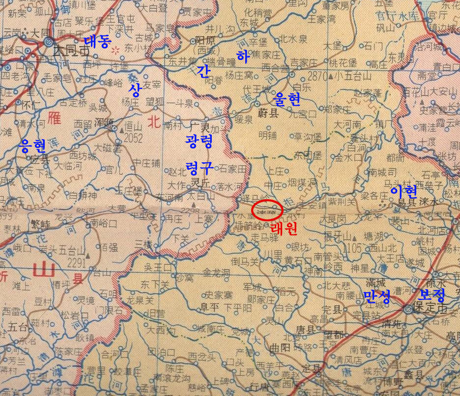 중국사가가 지명및 지도변경을 하지 않았다면 송나라 지도 보다는 거란등 동이계열 왕조에서 편찬한 지도가 정확하다 볼 수 있다. 고려의 래원성은 거란과의 대치지역이고 고려의 서북계라 볼수 있고 주변에 포진한 廣靈(실제는 廣寧)등의 지명이 눈에 익숙하다 추리도에서 보이는 말갈지에서 대각으로 흐르는 강은 汾河 고려시대 압록은 桑乾河 대릉하는 후대조작으로 보이고 래원성은 청대에는 직예성 현재는 산서성 지역으로 확인된다.