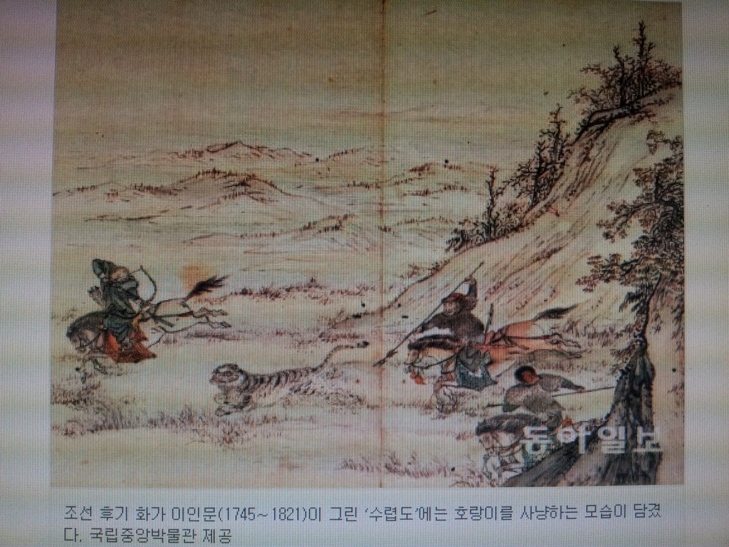 2013.04.24. 동아일보에 반도에서 그 많던 호랑이가 왜 갑자기 사라졌을까? 라는 제목의 기사가 나왔는데 병자호란 직전인 1633년 무안 현감 이었던 신집(申輯:1580~1639)이 올린 보고서에는 전국의 각 군이 해마다 호피 3장씩을 바쳤다는 기록이 나온다고 한다. 당시의 전국의 군현이 330여 개였음을 고려하면 1년에 약 1000여 마리의 호랑이를 잡았음을 알수 있다.
