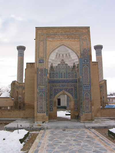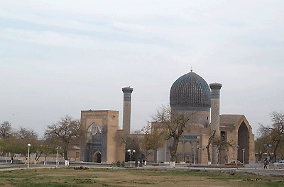 이곳에는 최성기의 티무르제국을 통치한 티무르(Timur)와 그의 손자, 우루그벡 등 3대 제왕의 묘가 안치되어 있다. 이 건축물은 1404년 티무르가 전사(戰死)한 손자인 무함메드 슐탄(Muhammad Sultan)을 위해 만들었다 한다. 거대한 푸른색 돔(지붕)으로 된 건축물로 돔 위에 다시 돔을 형성한 이중 돔 형태의 건축 양식을 취하고 있는 것이 특징이기도 하다.