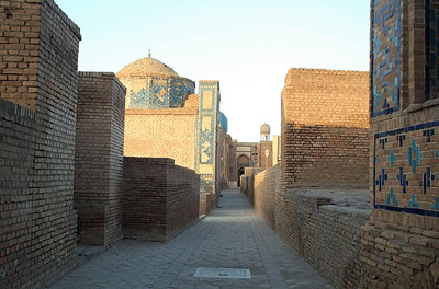 . 티무르의 묘가 열린 다음 날이 1941년 6월22일 히틀러는 독소(獨蘇)불가침조약을 깨고 소련에 대한 공격을 개시한 것이다. 히틀러의 공격과 티무르의 묘에 얽힌 전설과 어떤 연관성이 있는가는 알 수 없으나 역사의 미스테리의 하나임엔 분명하다. 사마르칸트의 유적지 견학 중에서 빼놓을 수 없는 곳이 있다. 그곳은 다름아닌 일명 "중앙아시아 왕가의 계곡"이라 불리는 샤히 진다(Shahi Zinda) 즉 "살아 있는 왕"으로 불리는 묘가 있는 곳이다. 이곳엔 130m의 거리에 남북의 좁은 통로을 따라 양쪽으로 20여개에 가까운 묘를 안치한 건축물들이 건립되어 있다. "살아 있는 왕"의 전설을 가진 쿠삼-분-앗바스와 티무르 일족이 잠들어 있는 곳이다.