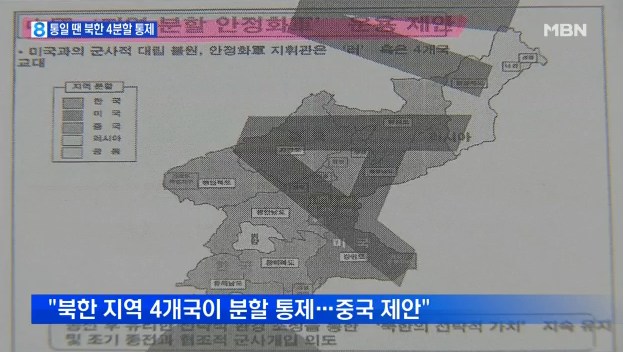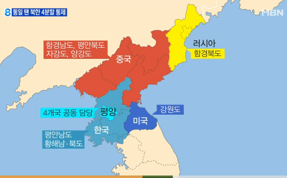 한반도 통일시 북한, 4개국이 분할 통제?