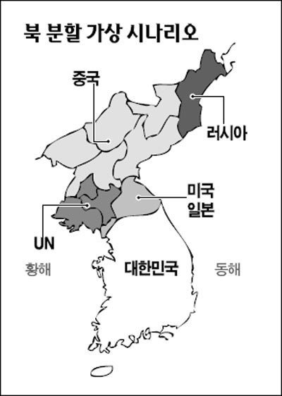 지난 2009년 9월초 미 국방부가 북한붕괴시 북한분할시나리오를 검토한다는 보도가 있었다.(*1)