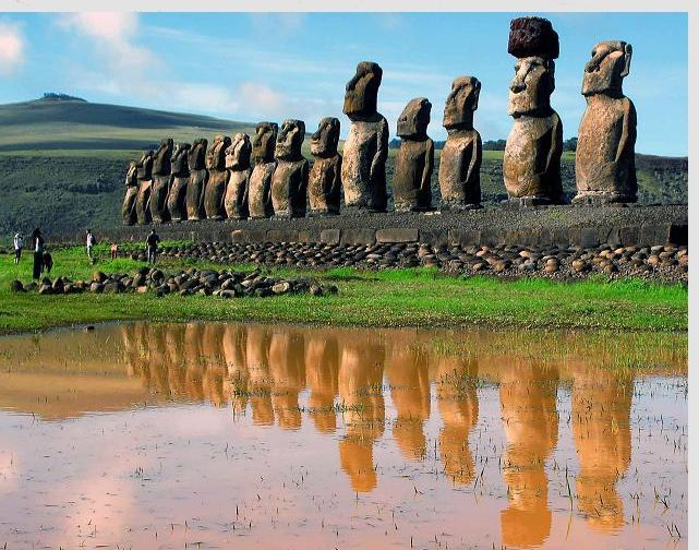 이 조그마한 섬이 유명하게 된 이유는 '모아이(Moai)'라고 불리는 거대한 석상들이 여기저기 서있기 때문이다.
