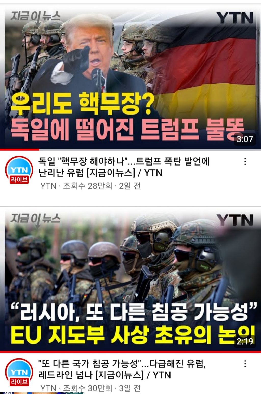 미국 트럼프 발언에 따라 유럽과 독일내 핵무장보유 얘기가 나옵니다. 한국 또한 북한 중국 (양안전쟁) 위협에 따라 독자적 핵무장을 해야 한다는 국민여론이 70프로에 이르고 있습니다.