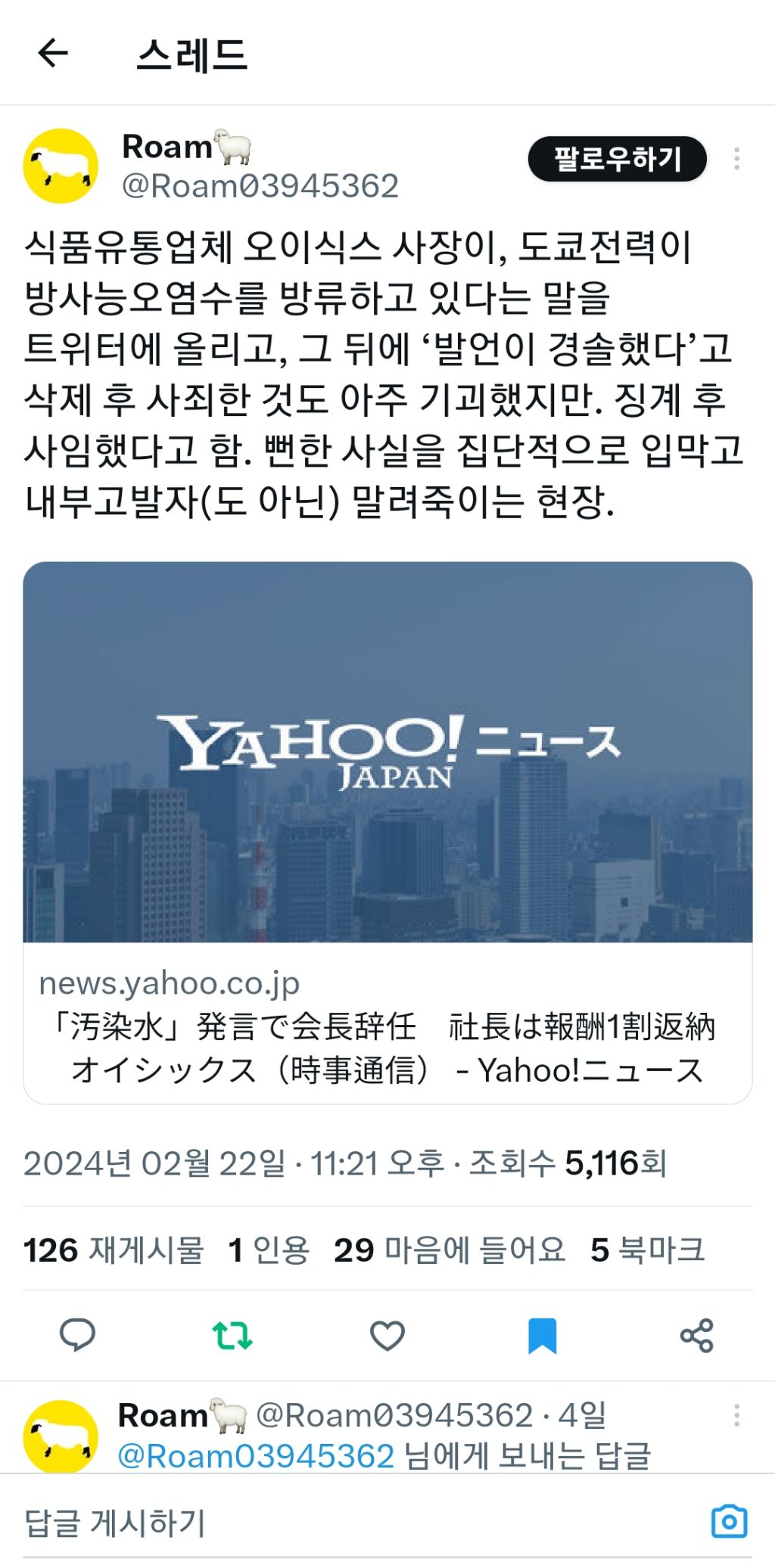 오이식스 회장이 처분되었지만, 공익재단법인 일본 생태계 협회@ecosysj 그렇습니다. 기형 발생률이 점점 올라갑니다. "