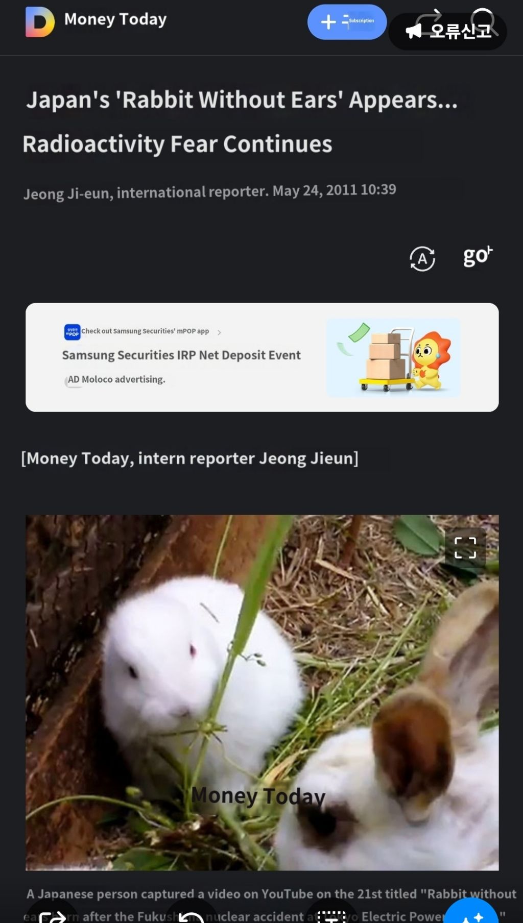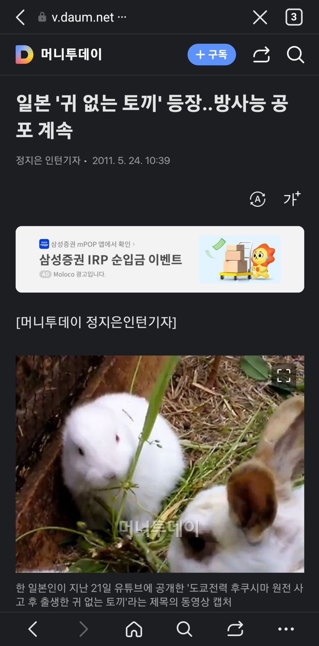 후쿠시마 귀없는 토끼 작성자별의정원|작성시간24.11.26|조회수44 목록 댓글 0 글자크기 작게가 글자크기 크게가 2011. 8 4 후쿠시마 '귀 없는 토끼' "기형. 공포는 계속 #방사능 #일본방사능 #체르노빌 6 다음검색 현재 게시글 추가 기능 열기 북마크 공유하기 신고 센터로 신고 댓글 댓글 0 댓글쓰기 답글쓰기 댓글 리스트
