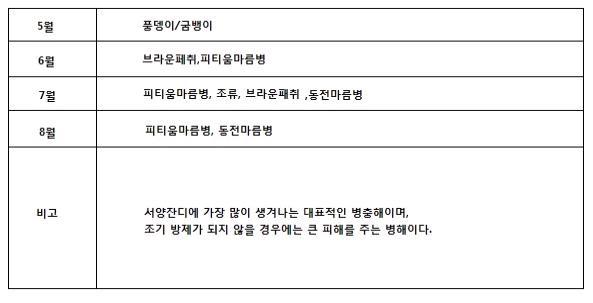 - 3월→12월 까지 생육, 1-2월은 황색기간, 여름에는 사용을 금함