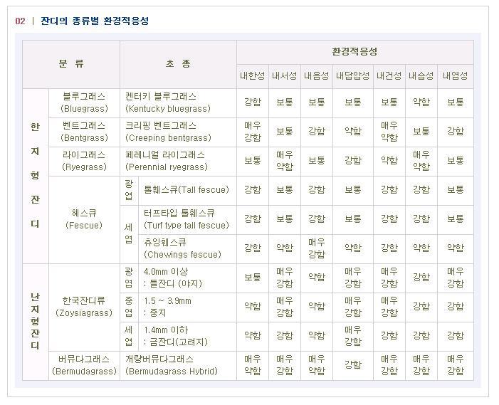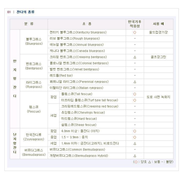 - 한지형 잔디 : 켄터키 블루 그라스와 동일