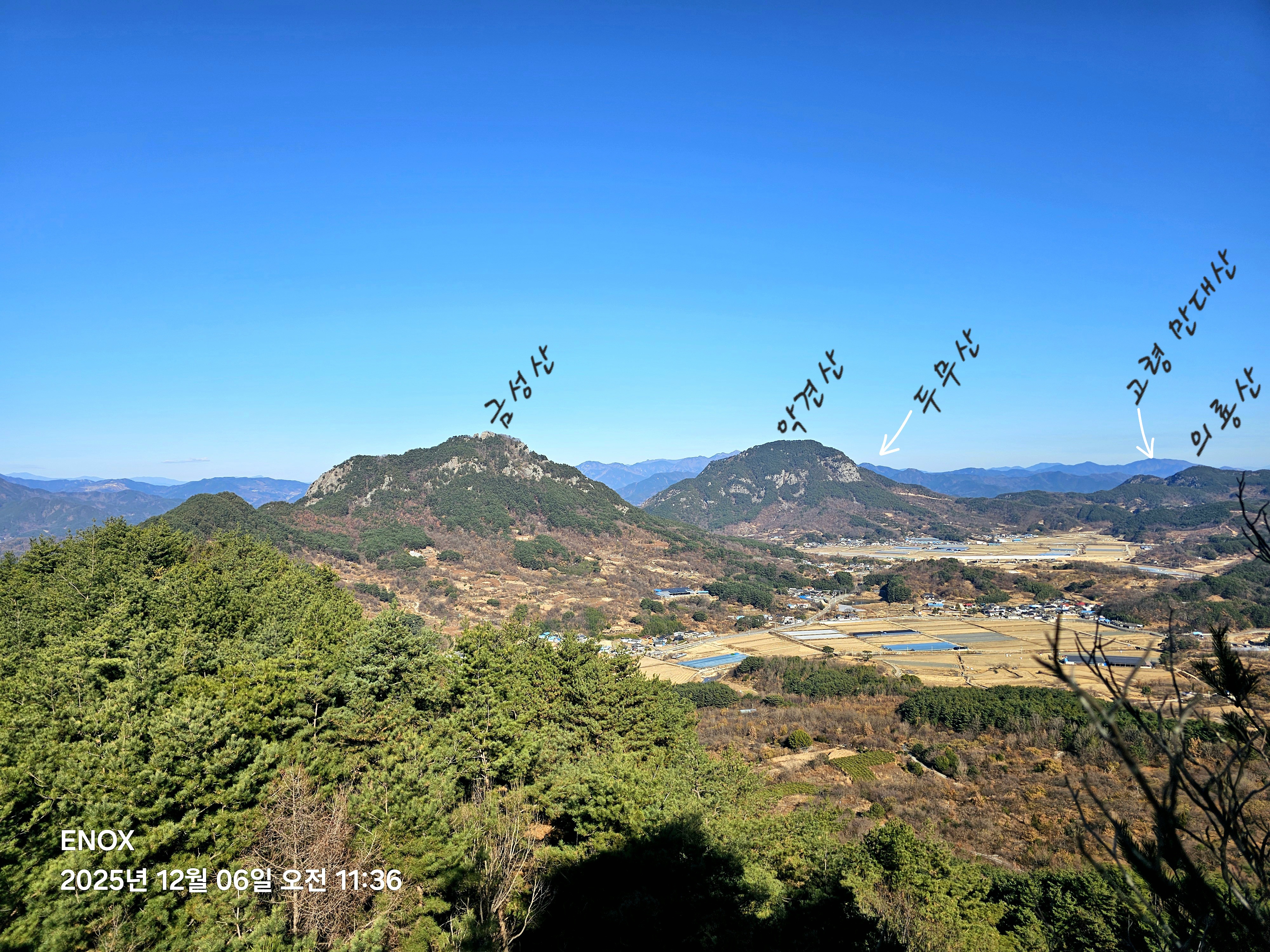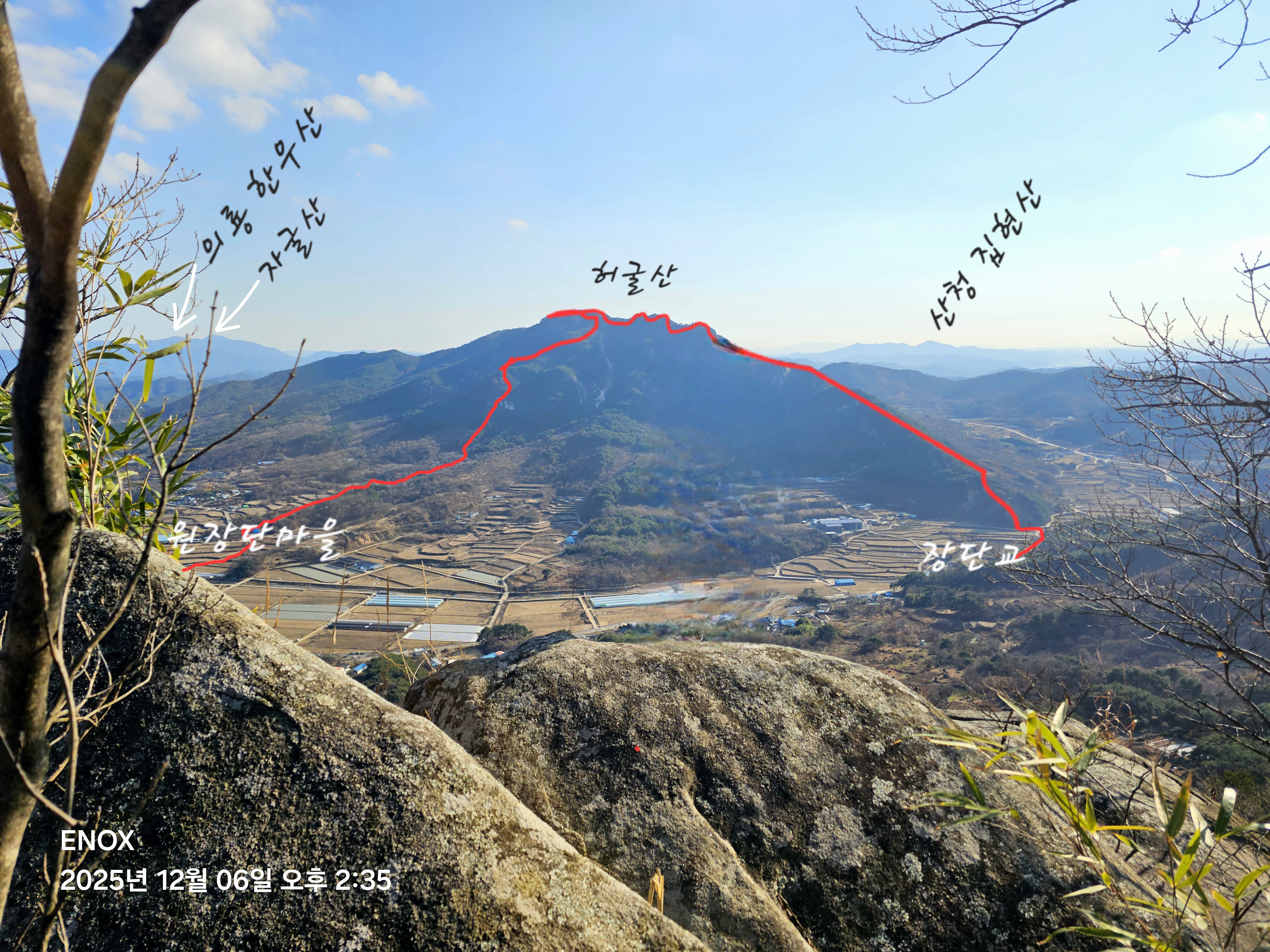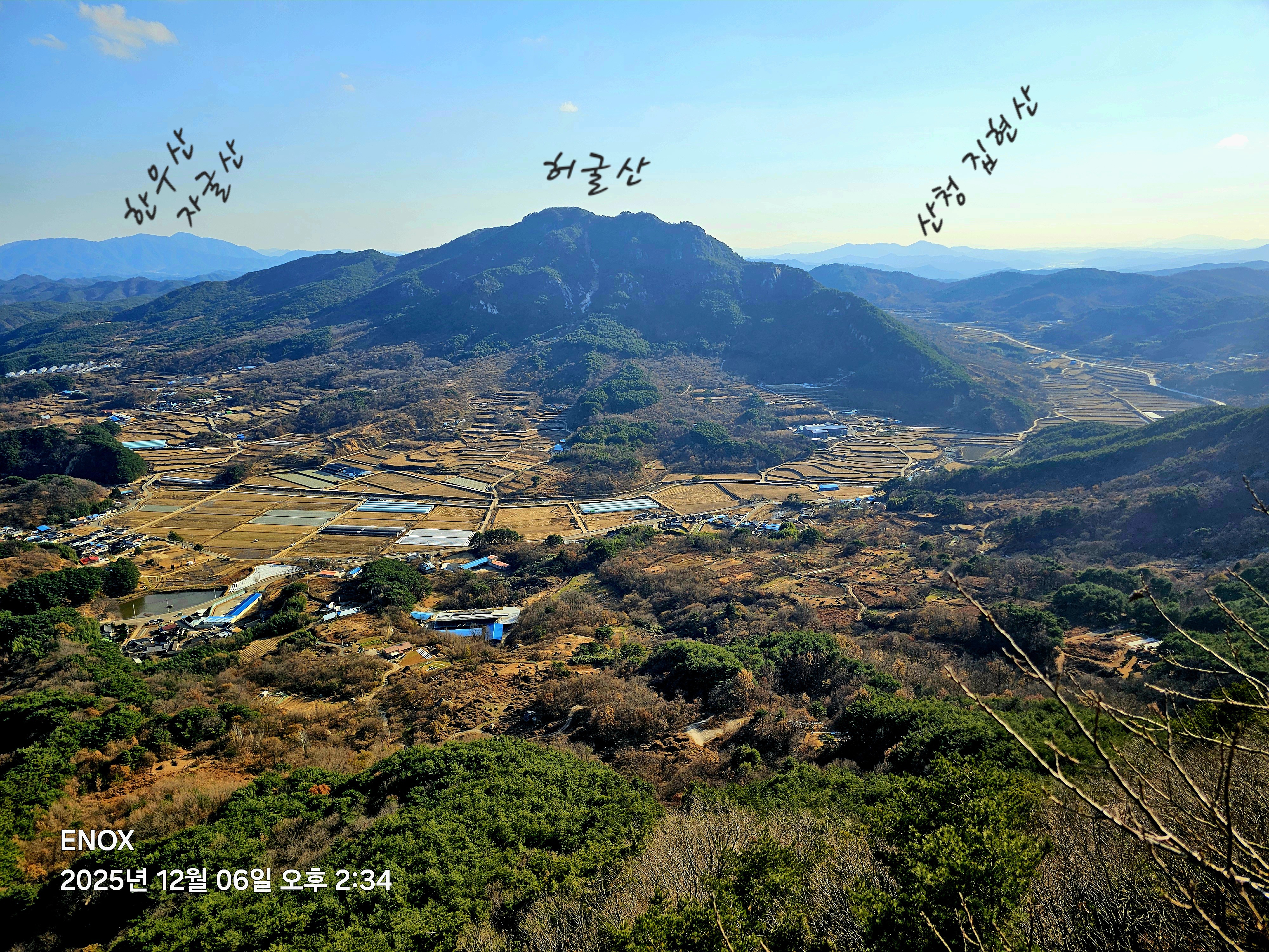 한우산, 좌굴산, 허굴산이 가깝게 잡힌다.