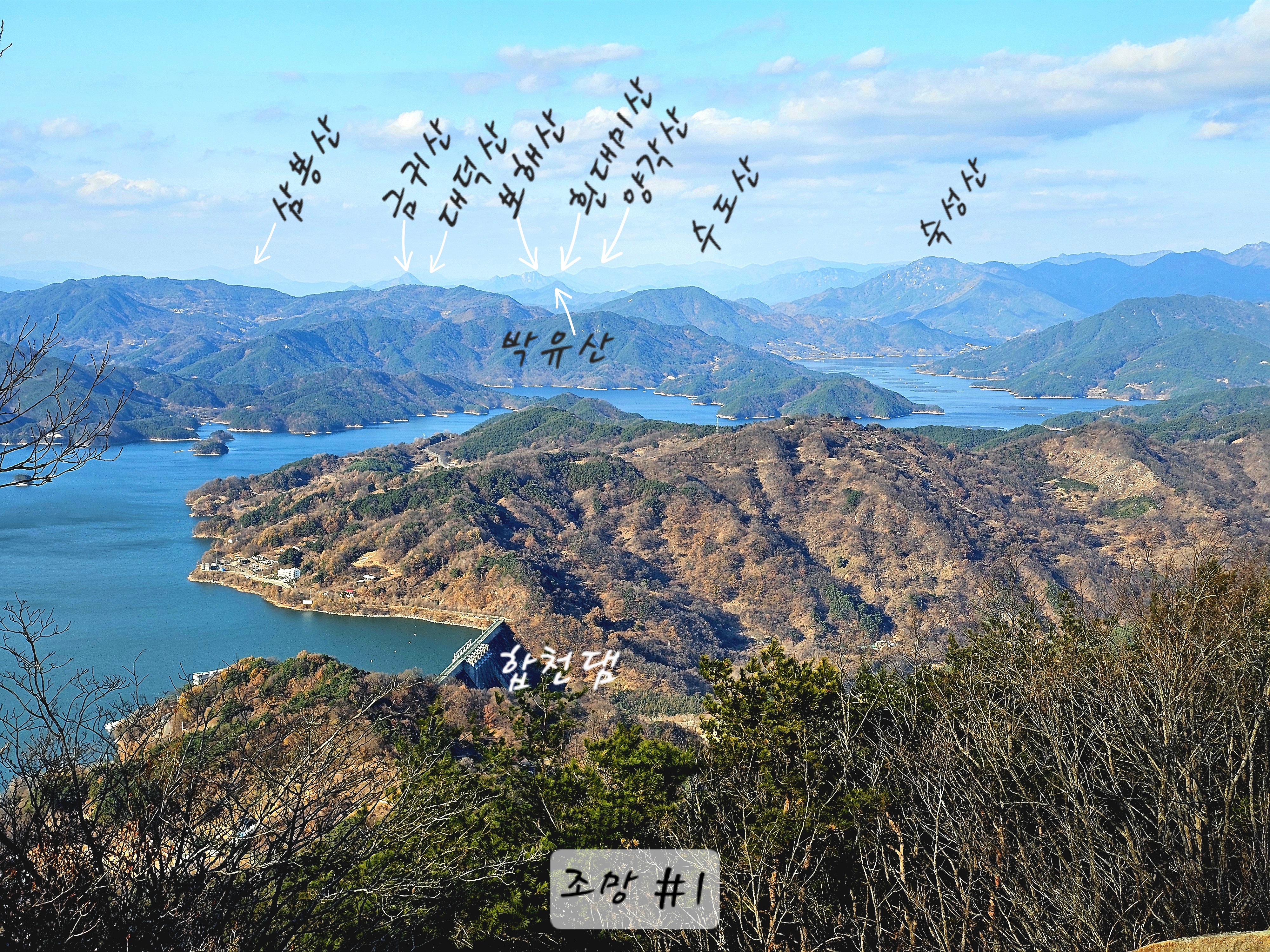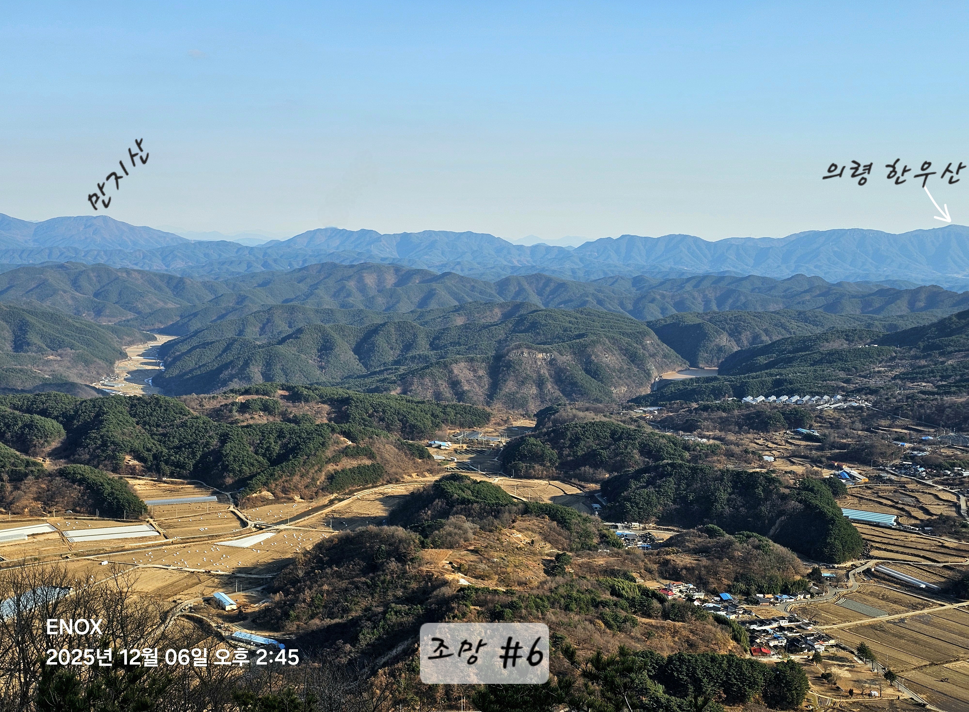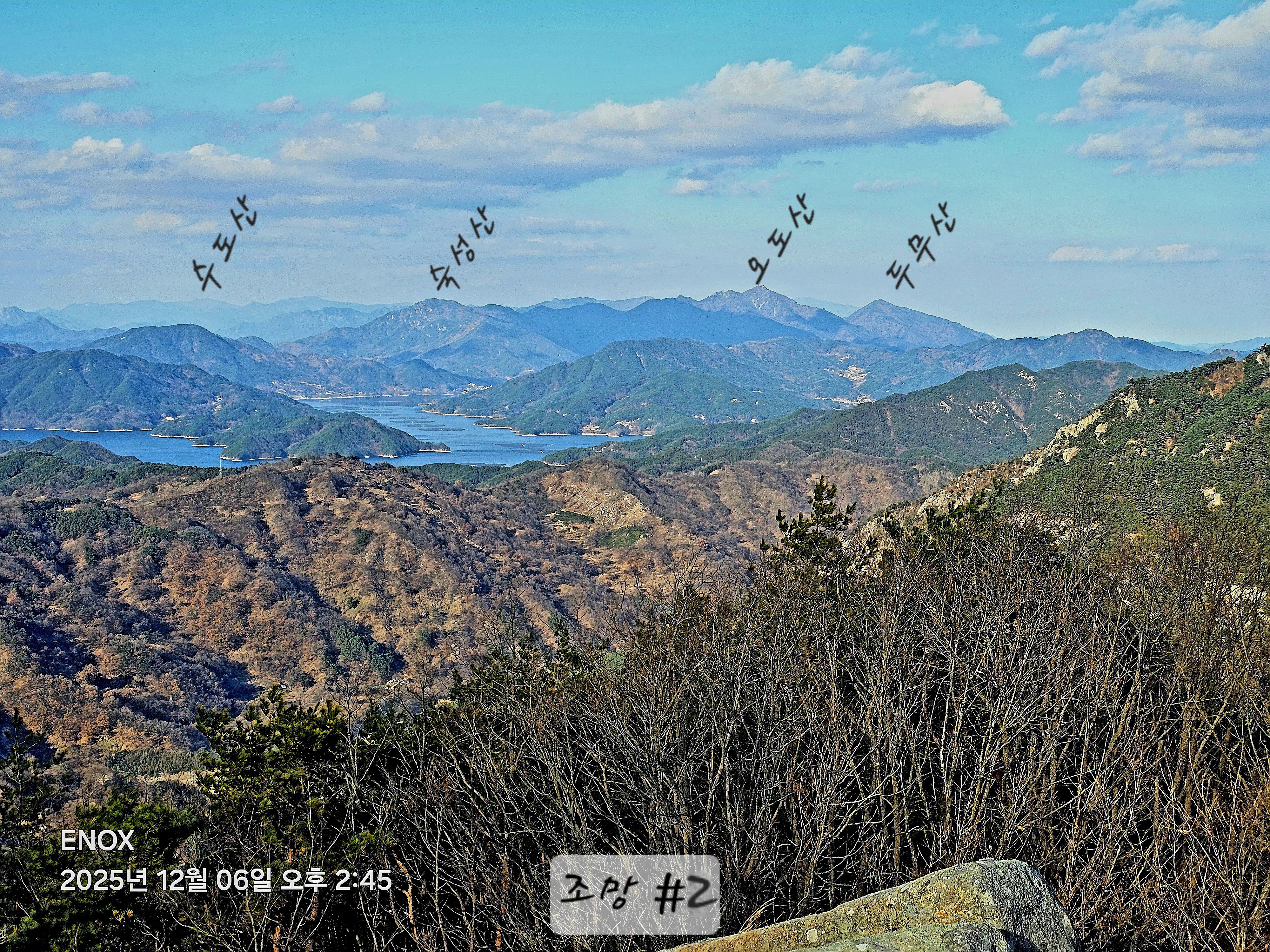 한우산, 좌굴산, 허굴산이 가깝게 잡힌다.