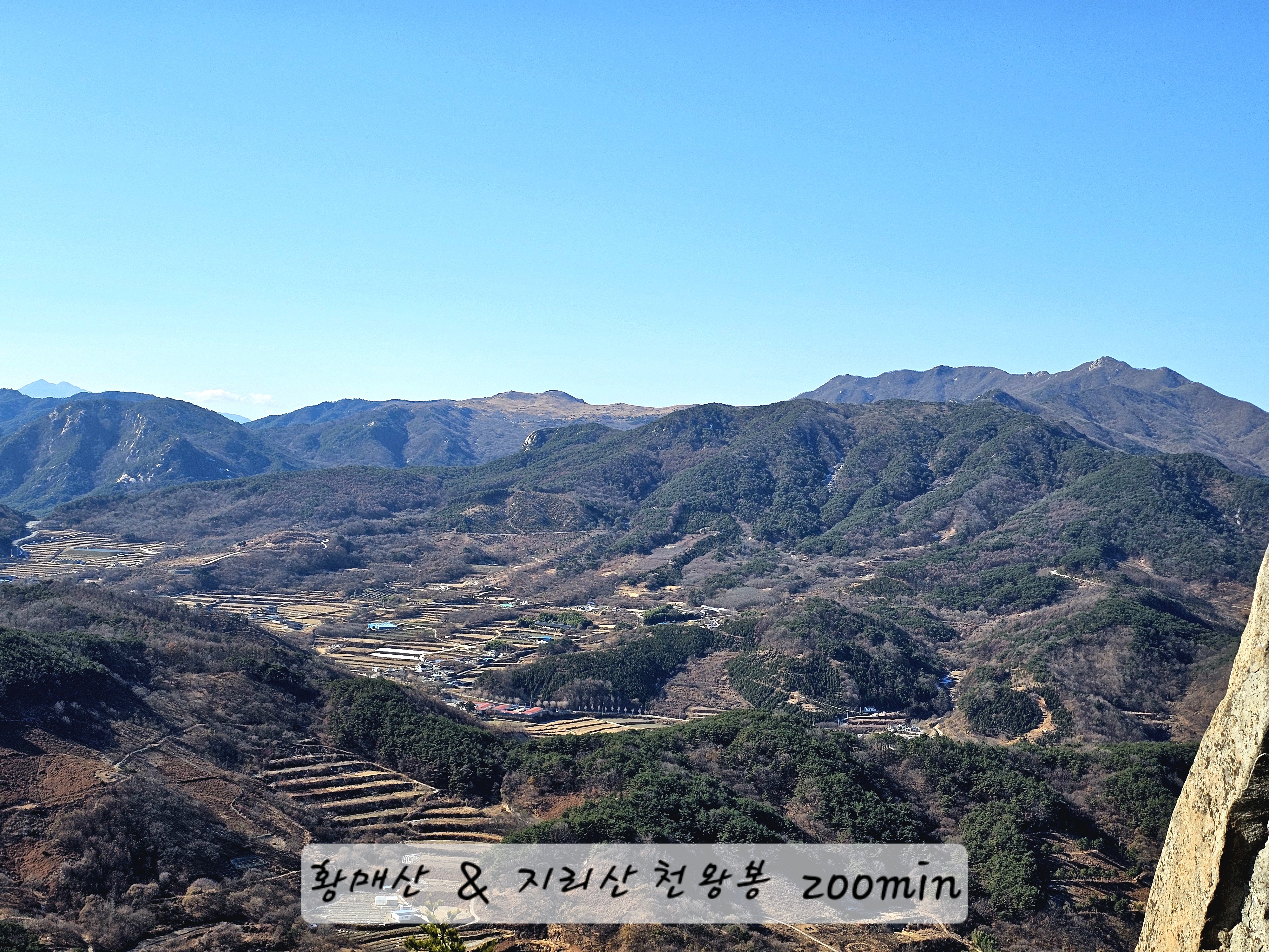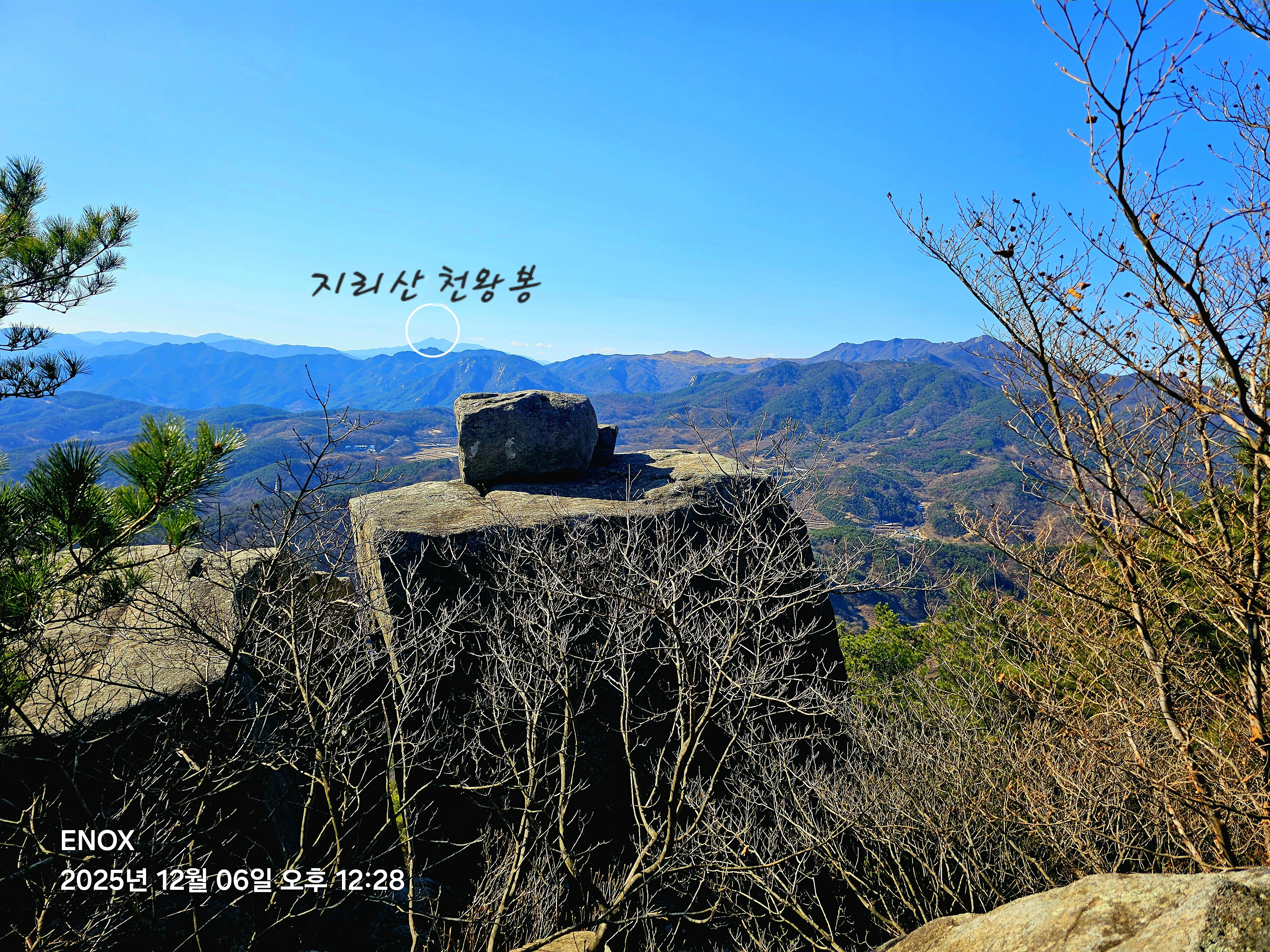 서쪽으로 웅석산, 지리산 천왕봉 상투와