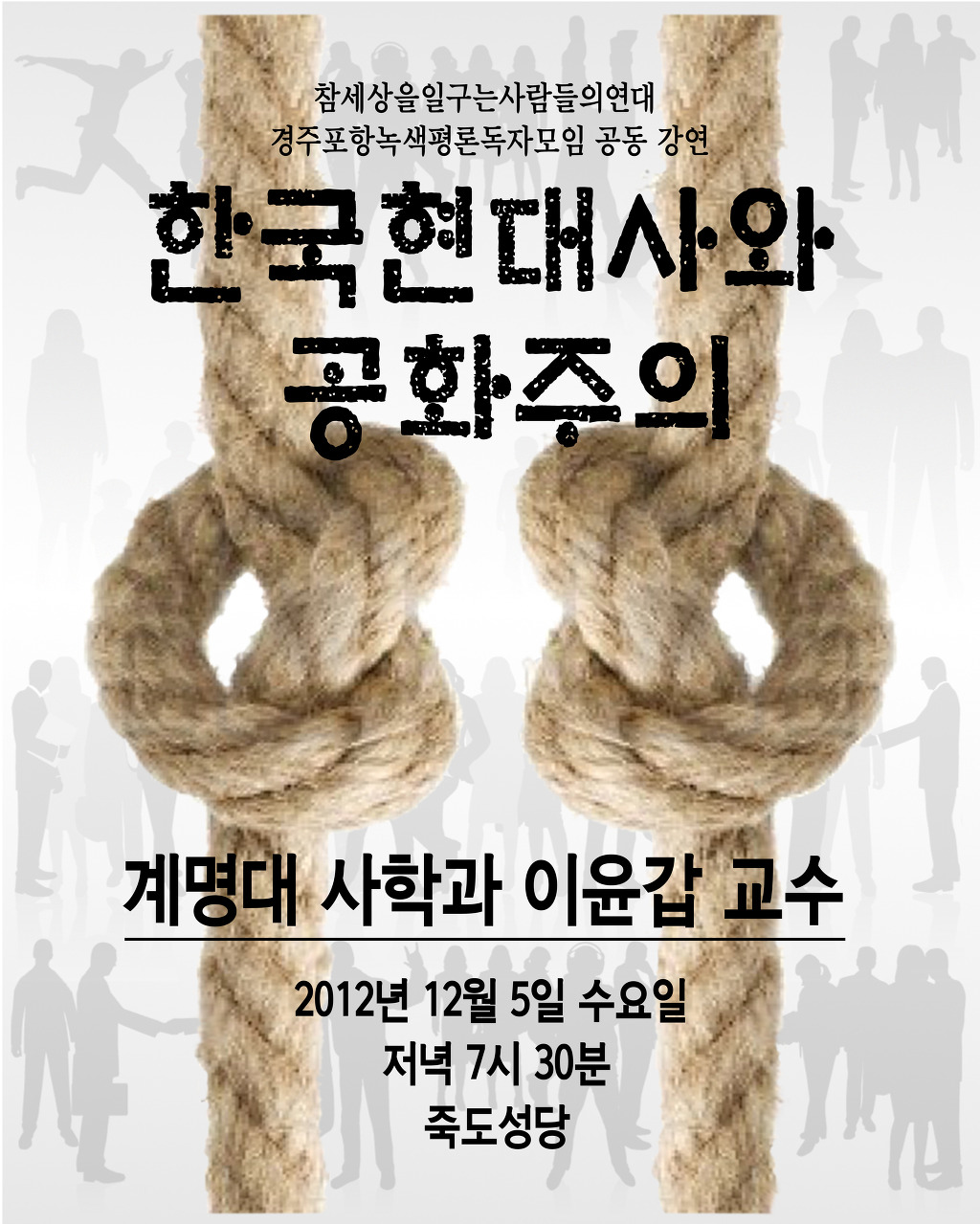 한국현대사와 공화주의-계명대 이윤갑교수 강연 12월 5일 수 웹자보 작성자노마드|작성시간12.11.15|조회수93 목록 댓글 0 글자크기 작게가 글자크기 크게가 다음검색 현재 게시글 추가 기능 열기 북마크 공유하기 신고 센터로 신고 댓글 댓글 0 댓글쓰기 답글쓰기 댓글 리스트