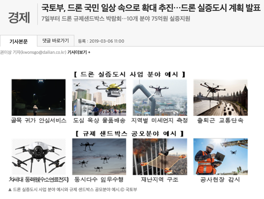 드론전망 '국토부, 드론 국민 일상 속으로 확대 추진…'_데일리안 발췌