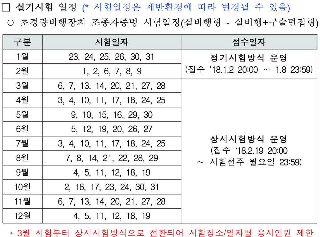 2018년 '초경량비행장치조종자' 학과시험& 실기시험 일정