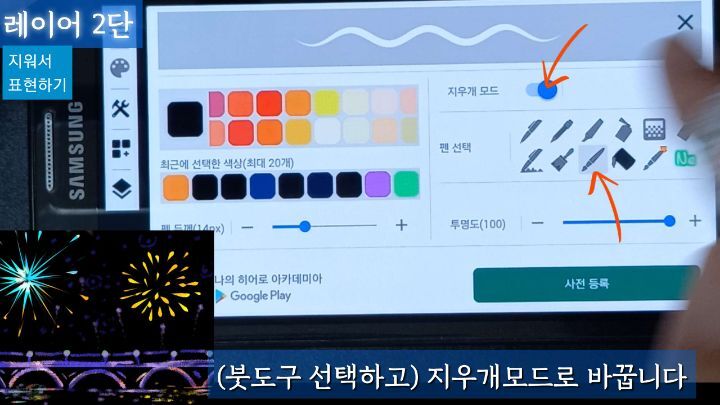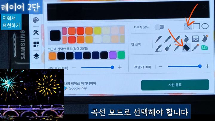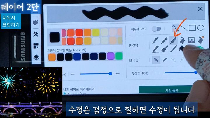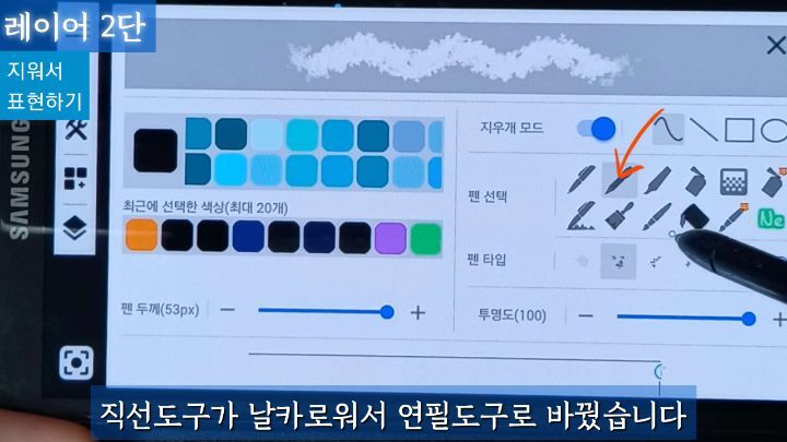 좀더 자연스러운 연필도구를 선택해서 지우개 모드로 나머지를 표현합니다