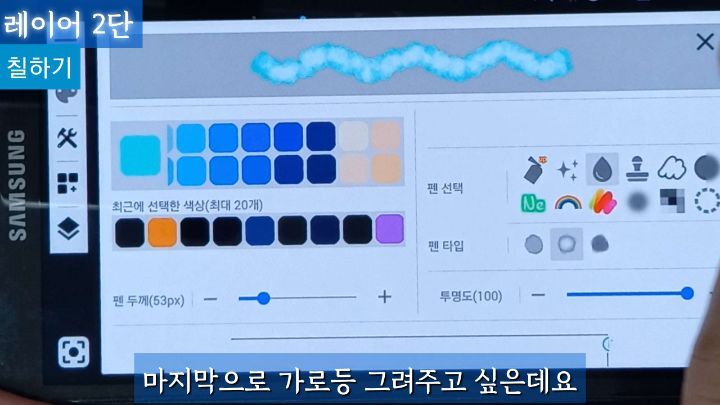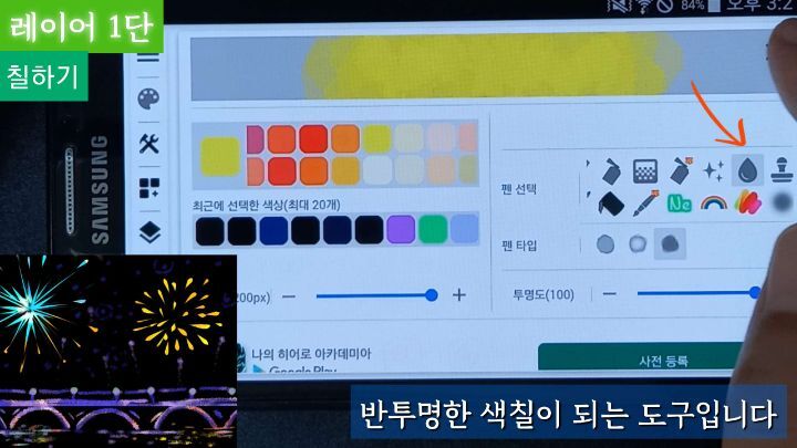 물방울도구는 반투명하나 투명도를 더 낮춰서 칠해도 좋아요