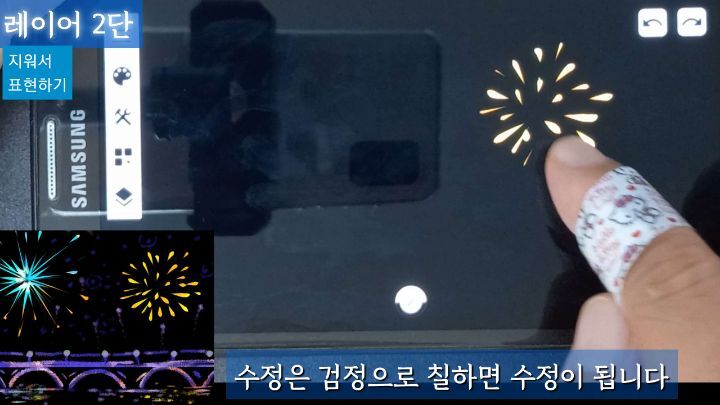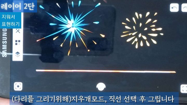 지우개모드로 변환한 뒤 불꽃모양을 그립니다