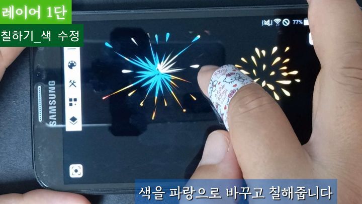 (한 터치에 여러가지 색이 ~~)