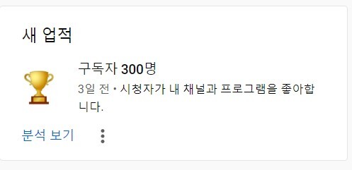 유튜브 구독자 300명이 넘었다고 트로피(이모티콘) 받은 기념으로 만들었어요~
